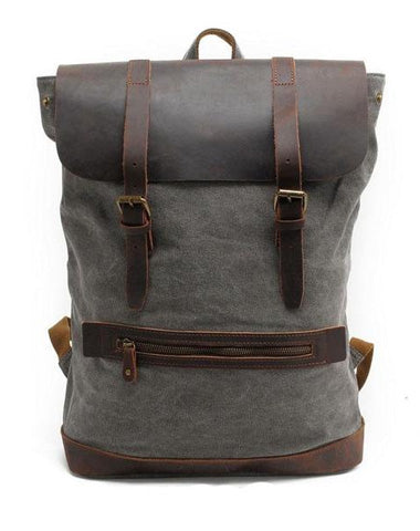 Style: Cool Canvas Leather Mens School Backpack Laptop Backpack Canvas Travel Backpack Canvas for Men