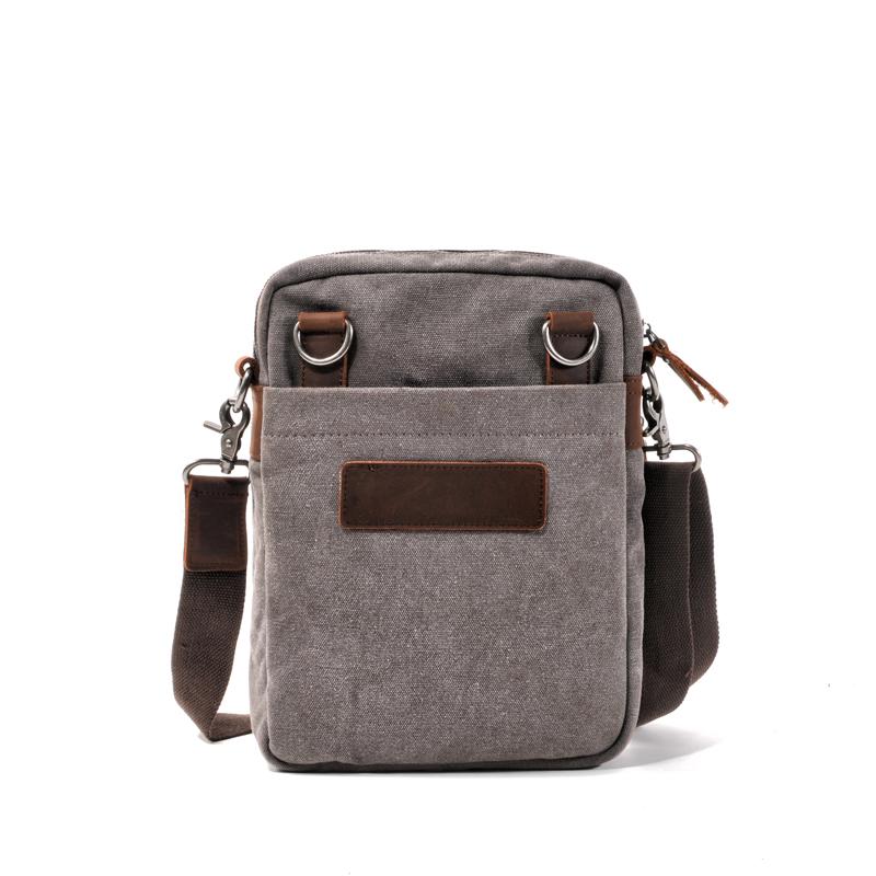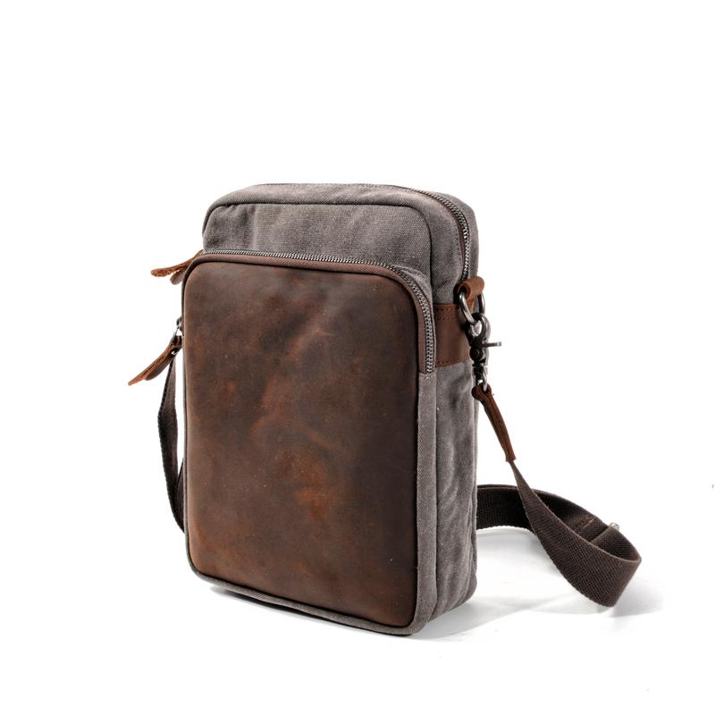 Design: Cool Canvas Leather Mens Side Bag Black Shoulder Bag Multi- Function Messenger Bag for Men