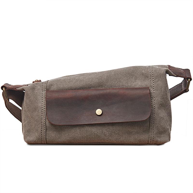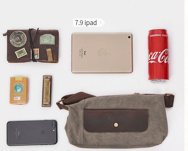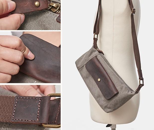 Design: Cool Canvas Leather Mens Sling Bag Chest Bag One Shoulder Pack for men