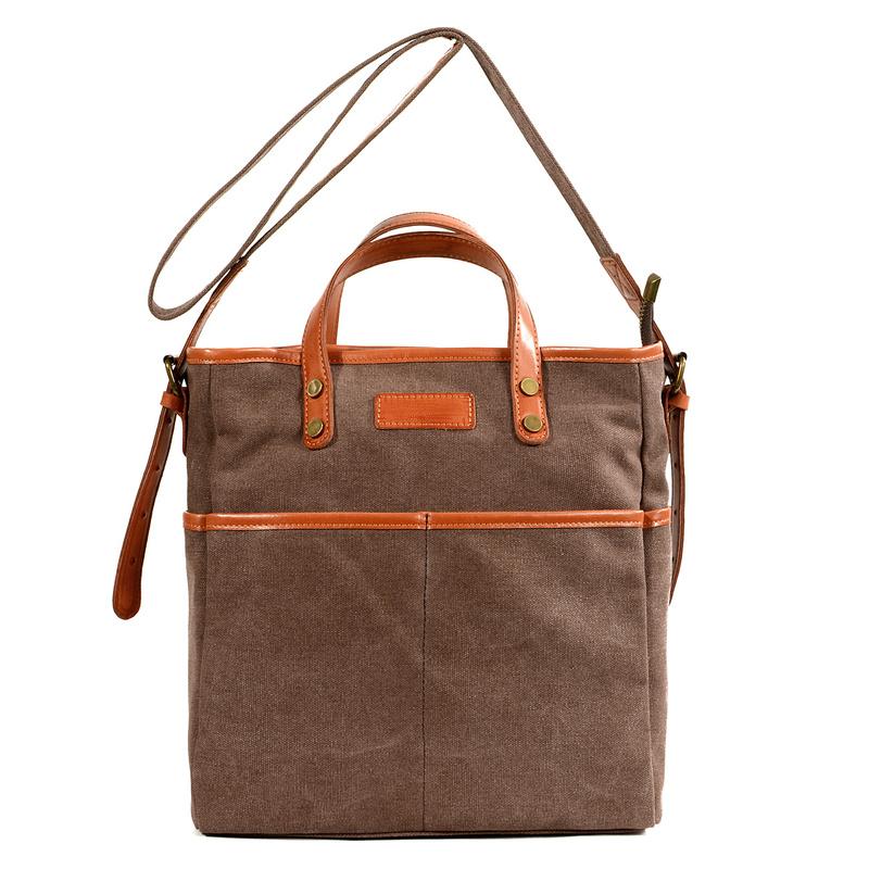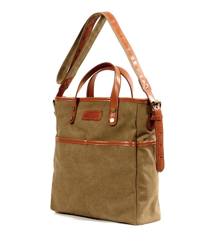 Design: Cool Canvas Leather Mens Small Brown Messenger Bag Vertical Side Bag Shoulder Bag Handbag For Men