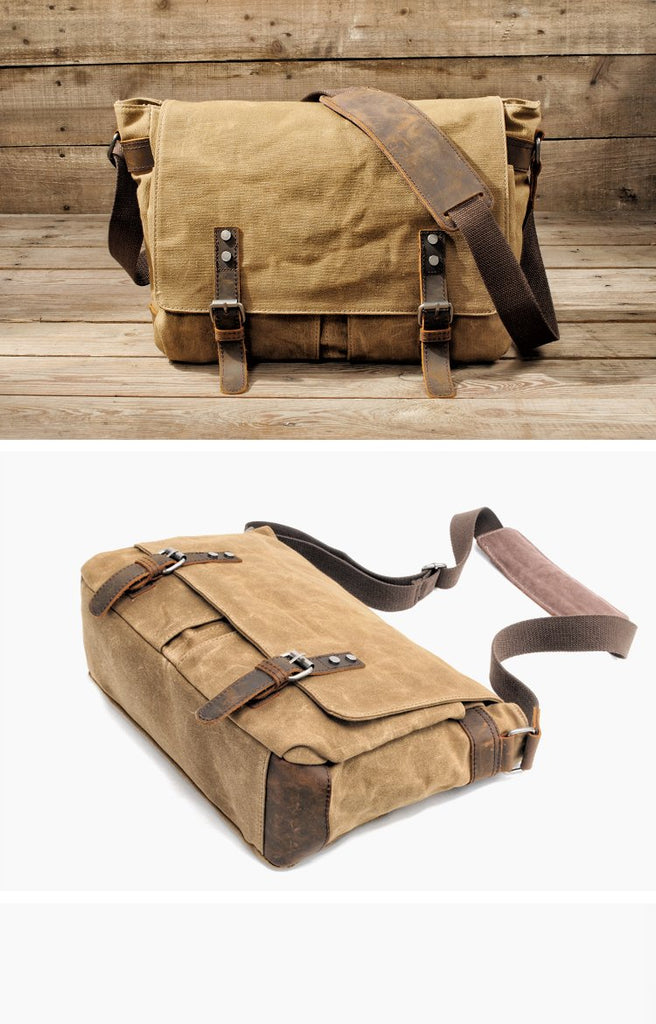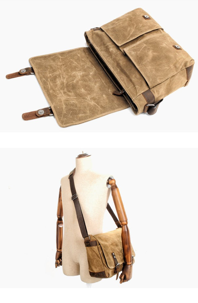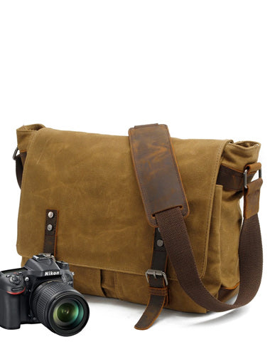 Style: Waxed Canvas Leather Mens Black Waterproof 14'' Camera Bag Gray Side Bag Messenger Bag Shoulder Bag For Men