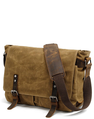 Design: Waxed Canvas Leather Mens Waterproof 14‘’ Computer Side Bag Messenger Bag For Men