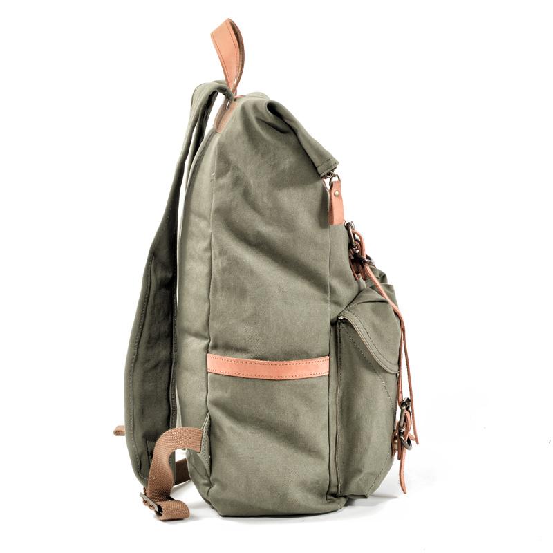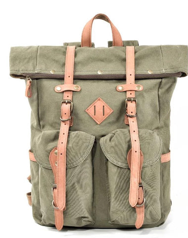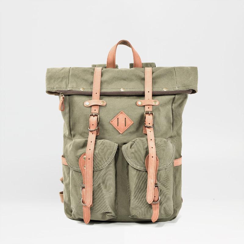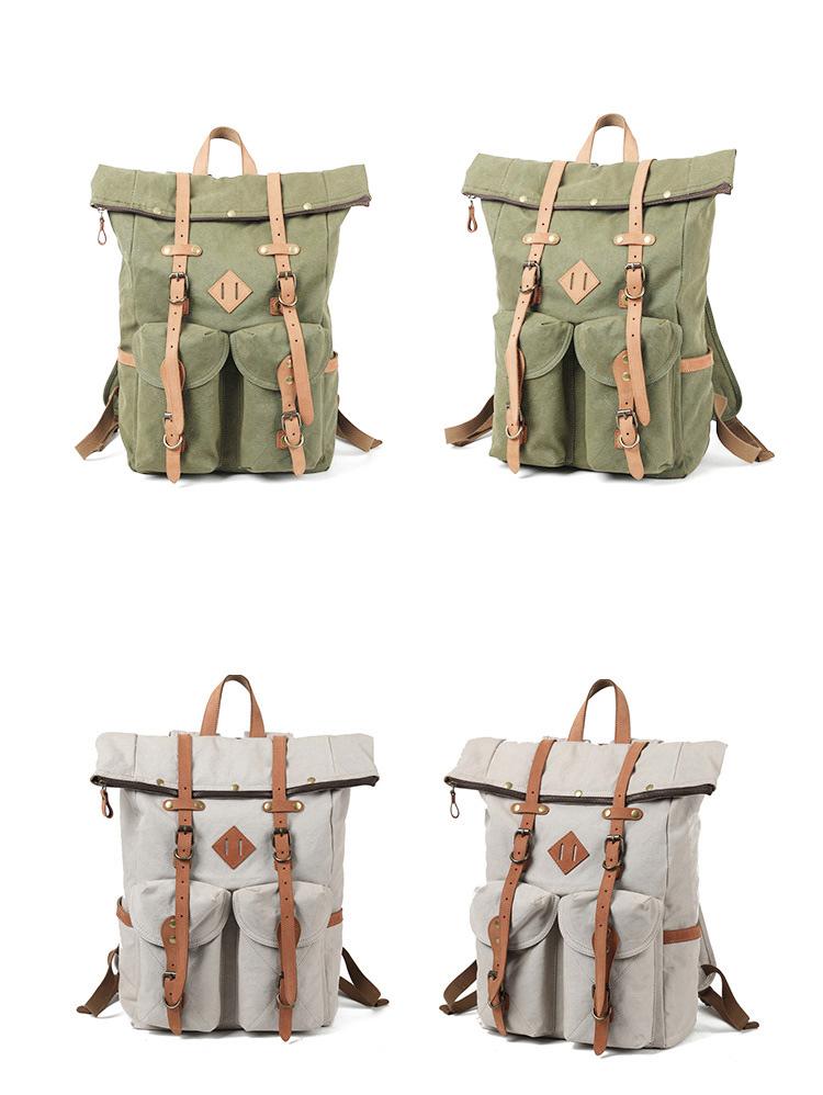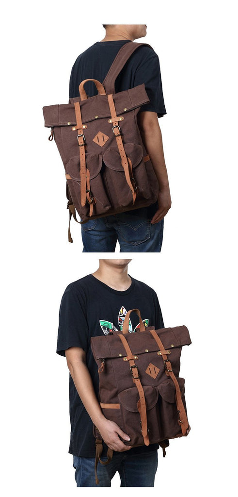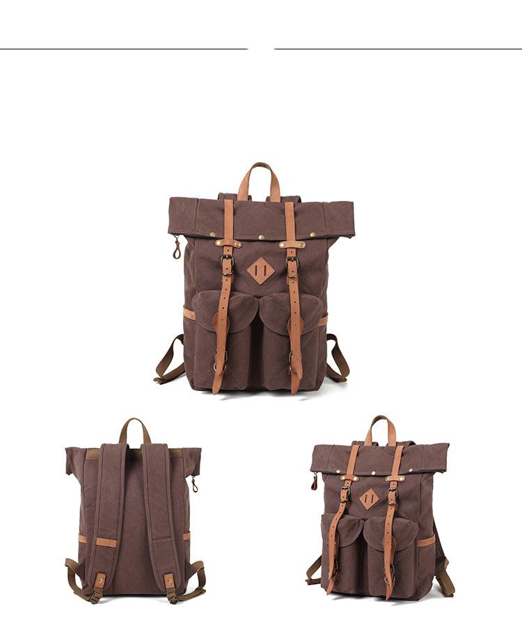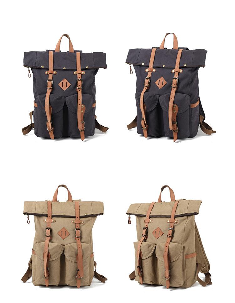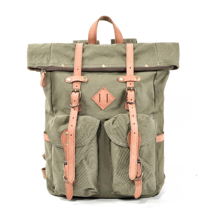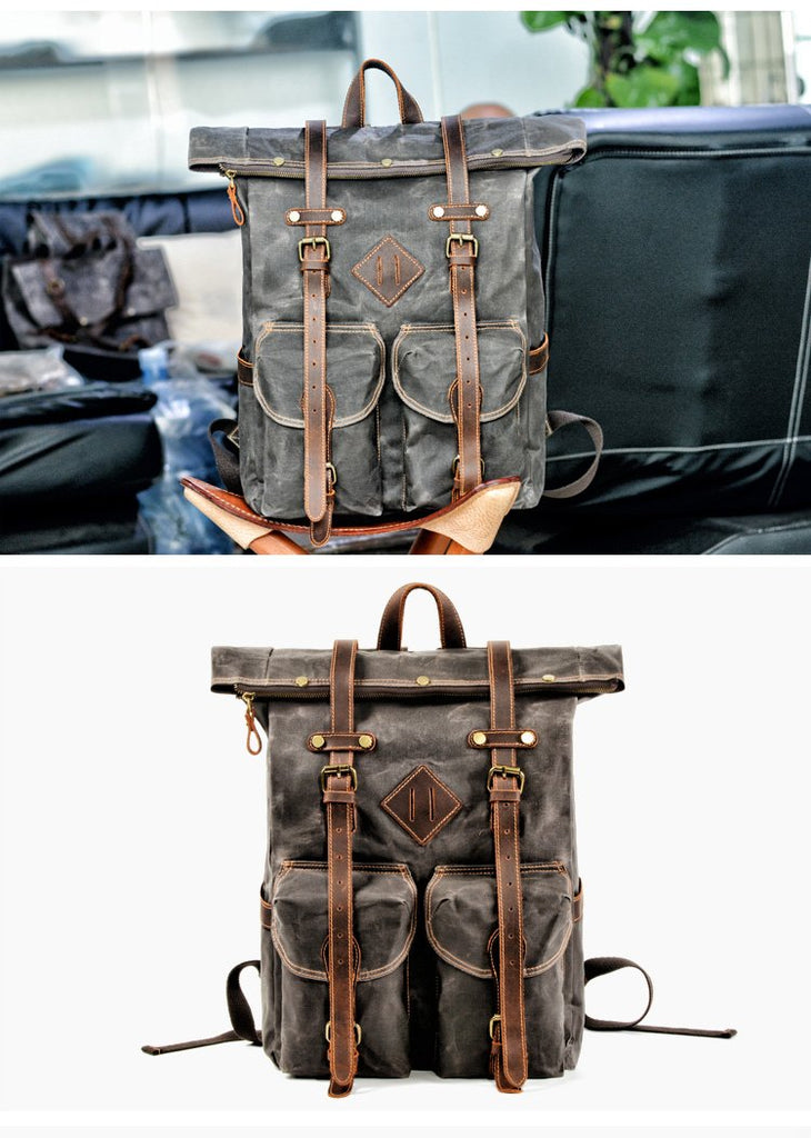 Design: Cool Waxed Canvas Leather Mens Waterproof 16‘’ Large Hiking Backpack Travel Backpack for Men