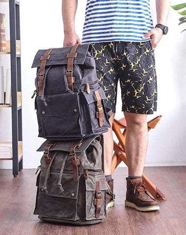 Style: Cool Canvas Leather Mens Waterproof Shoulder Bag Large Backpack Travel Backpack College Bag for Men