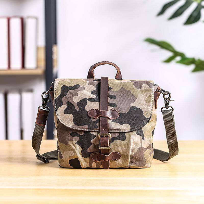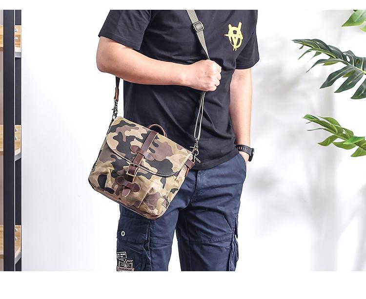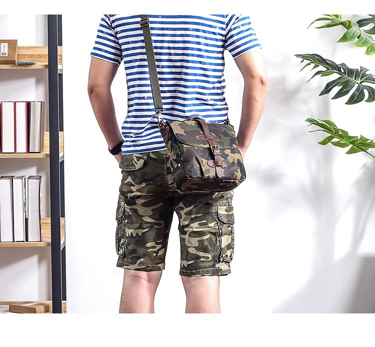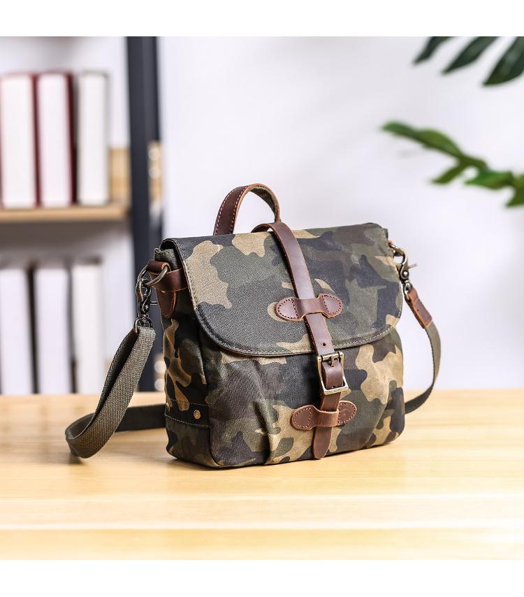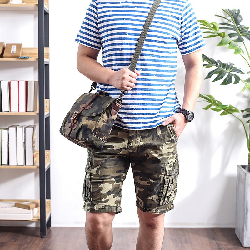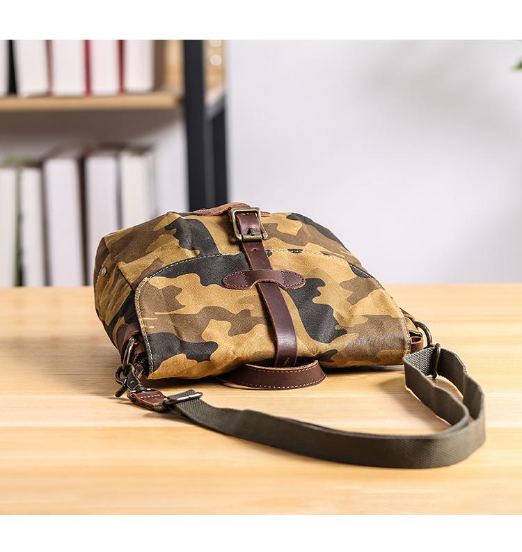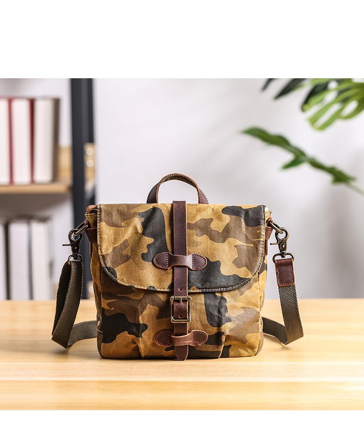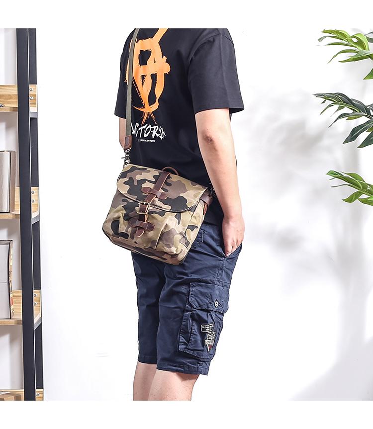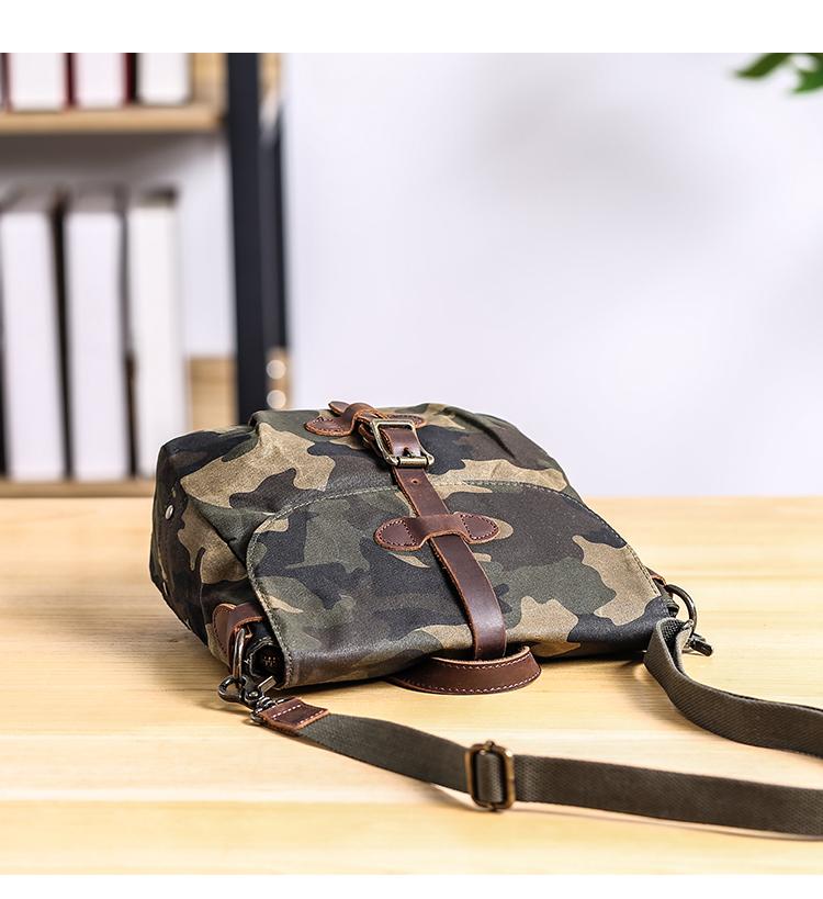 Design: Cool Canvas Leather Mens Waterproof Side Bag Shoulder Bag Messenger Bag Small Backpack for Men