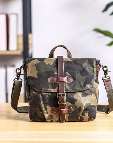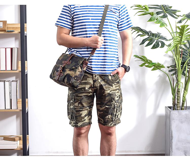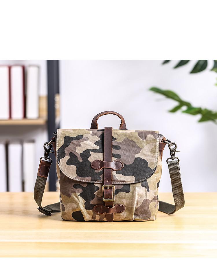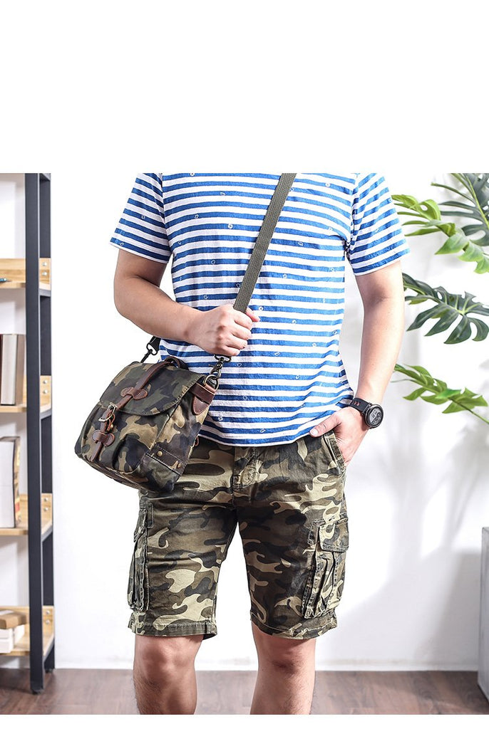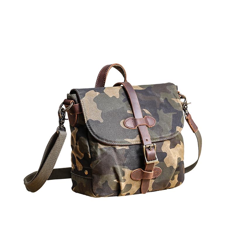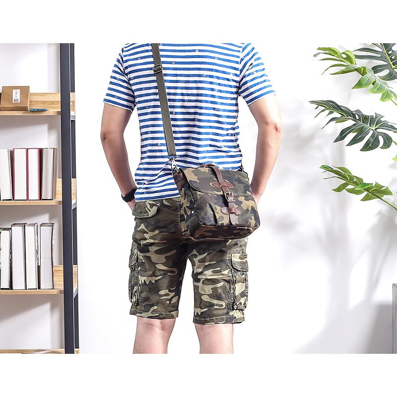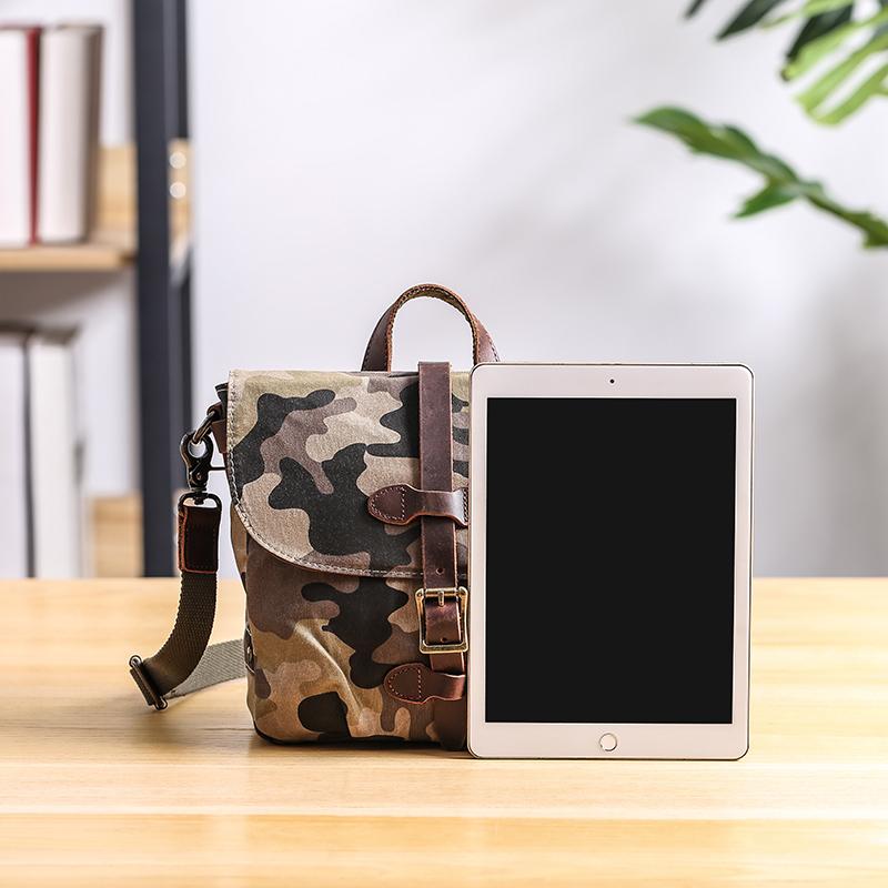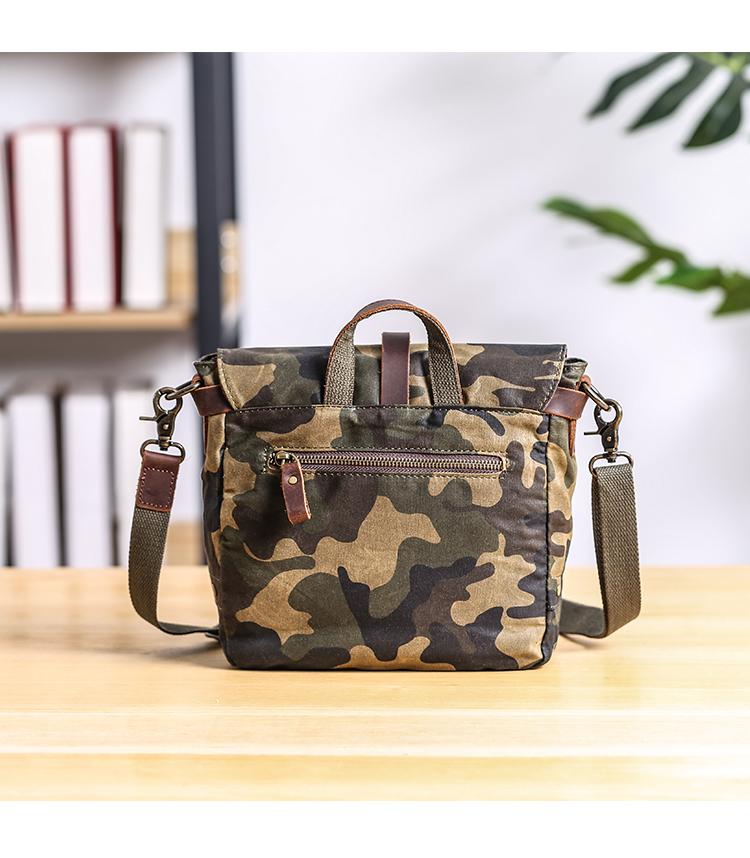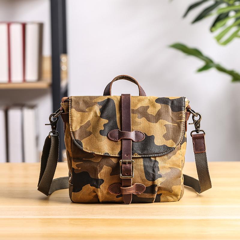 Design: Cool Canvas Leather Mens Waterproof Side Bag Shoulder Bag Messenger Bag Small Backpack for Men