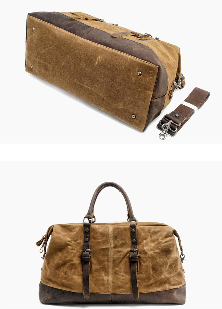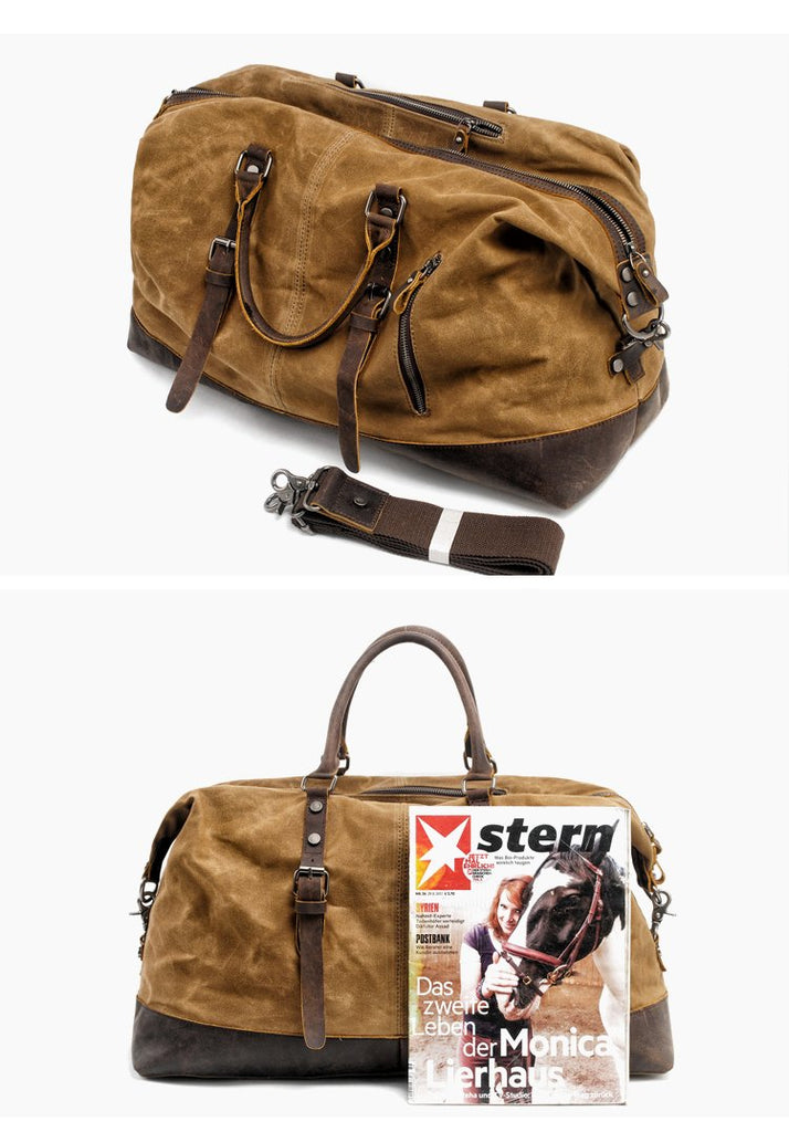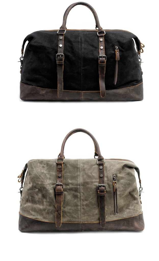 Design: Cool Canvas Leather Mens Travel Weekender Bag Waterproof Duffle bag for Men