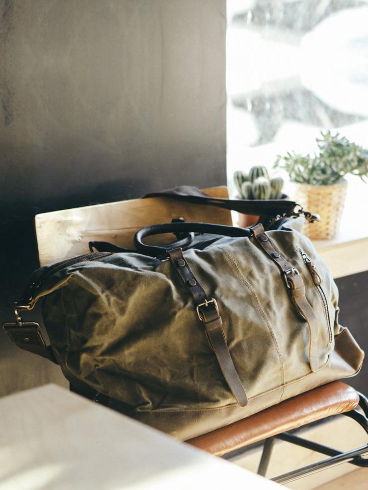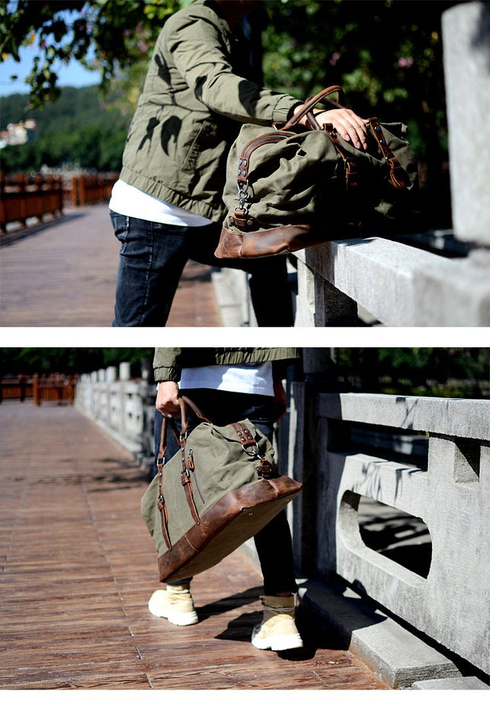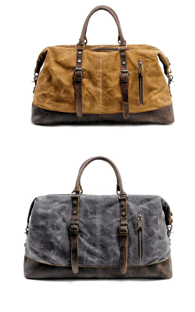 Style: Cool Canvas Leather Mens Travel Weekender Bag Waterproof Duffle bag for Men