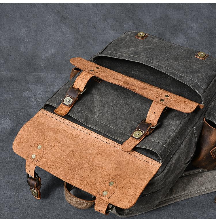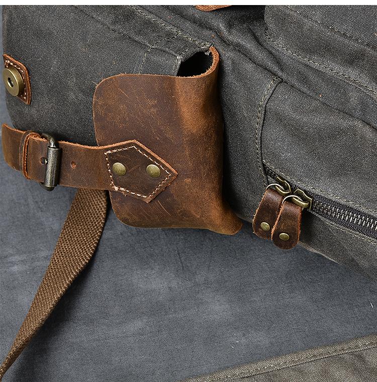 Design: Waxed Canvas Leather Mens 15" Laptop Backpack Army Green Travel Backpack College Backpack for Men