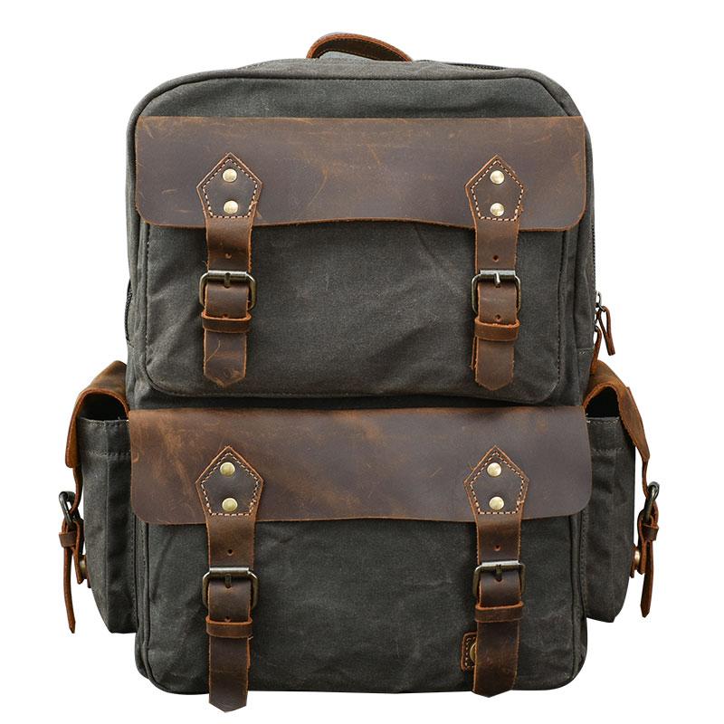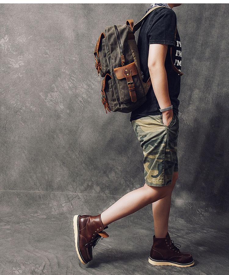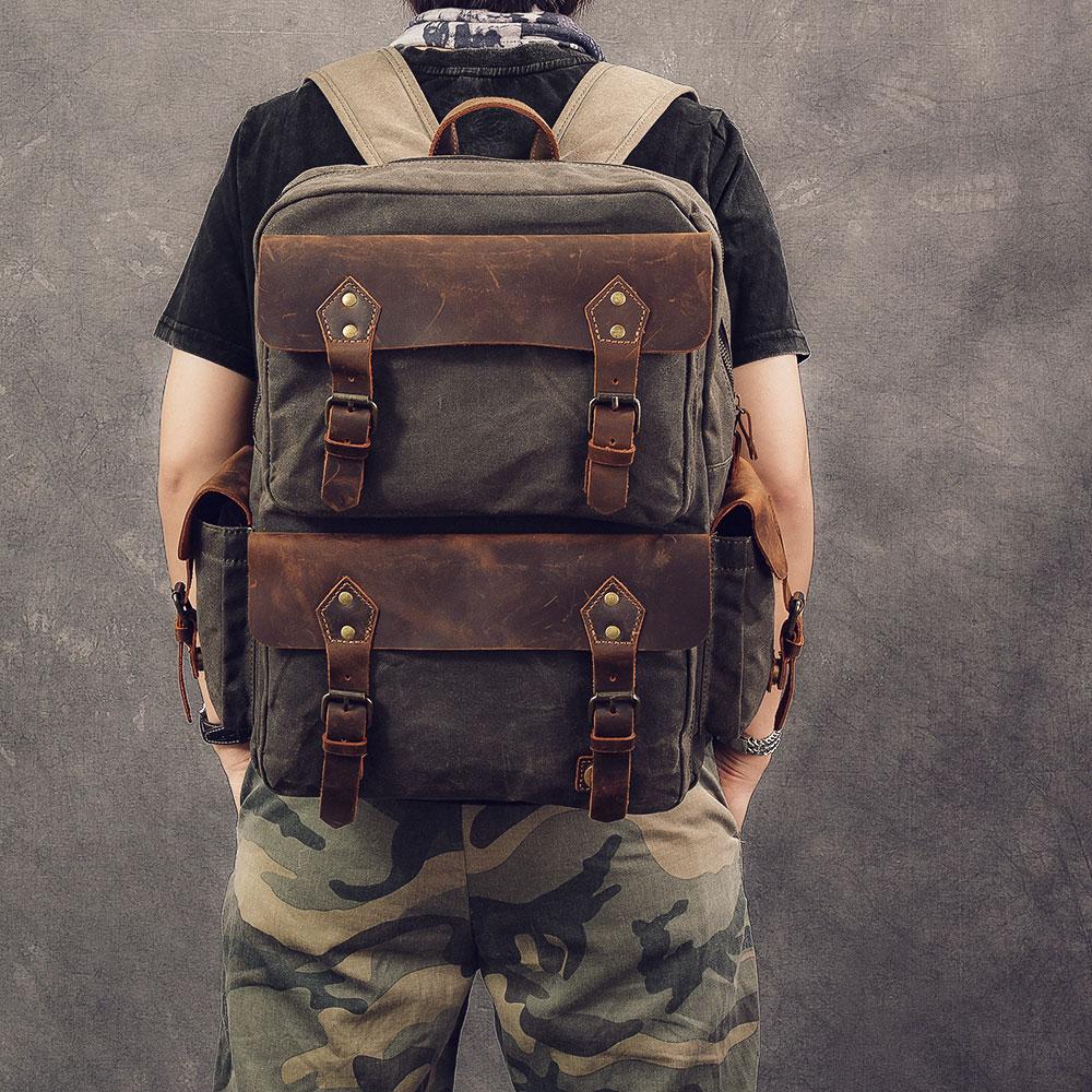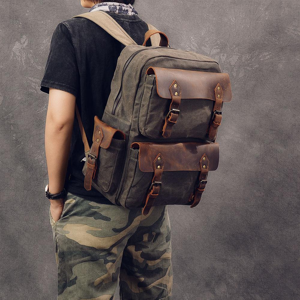 Style: Waxed Canvas Leather Mens 15" Laptop Backpack Army Green Travel Backpack College Backpack for Men