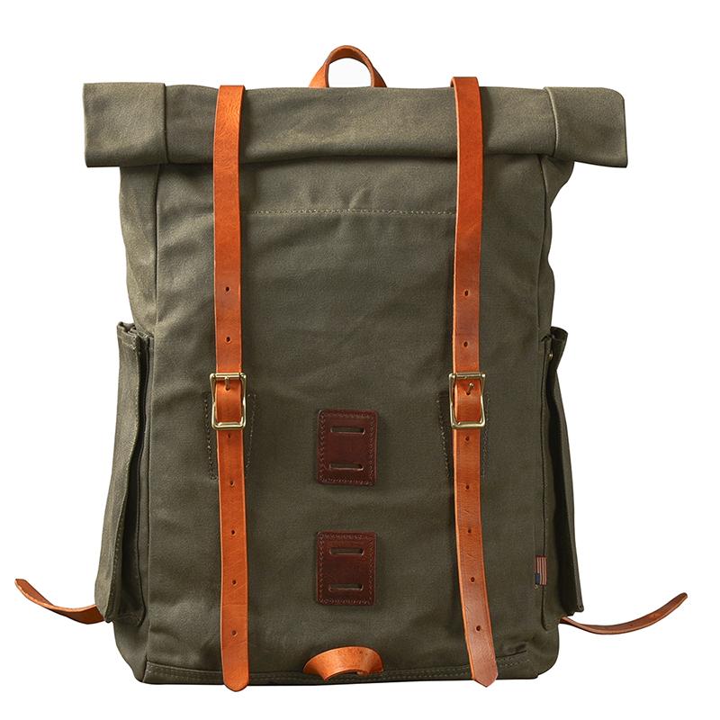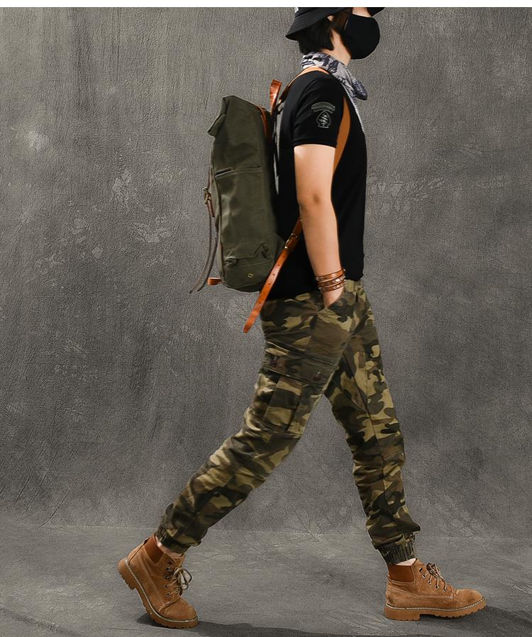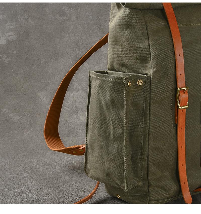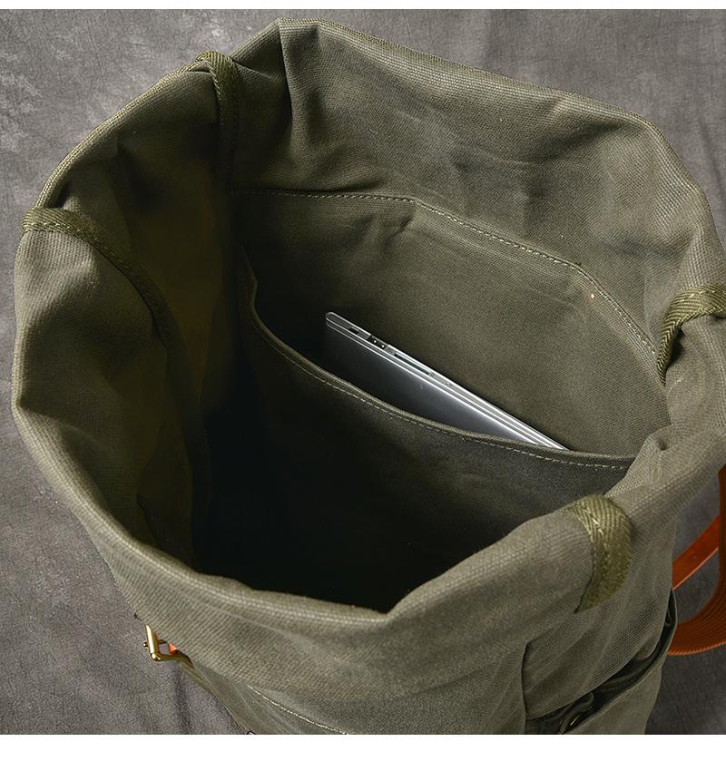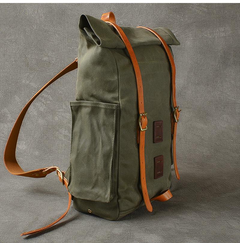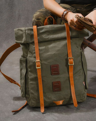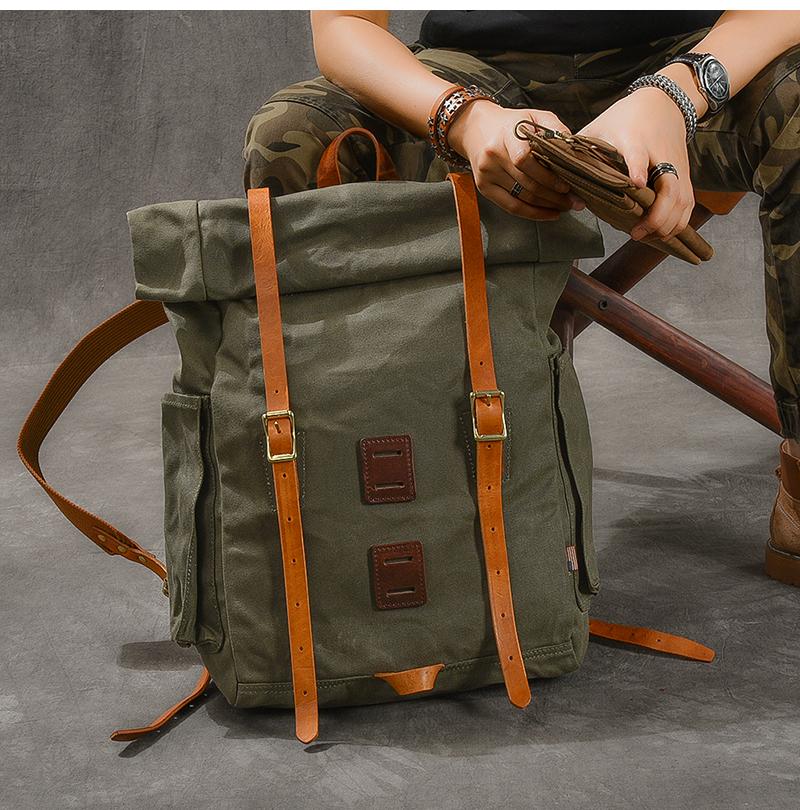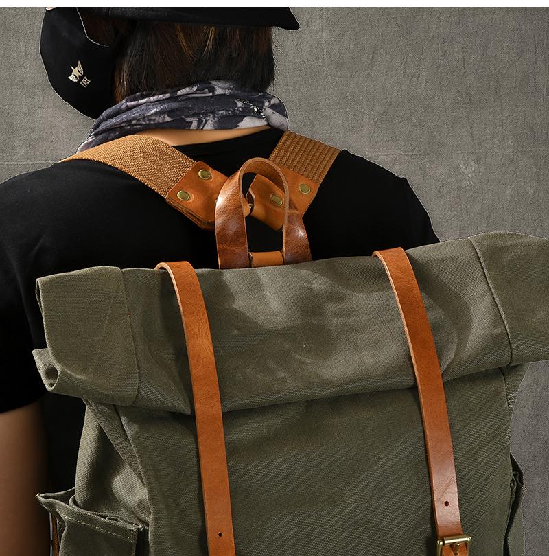 Style: Cool Canvas Leather Mens Womens 26" Army Green Hiking Backpack Travel Backpack College Backpack for Men