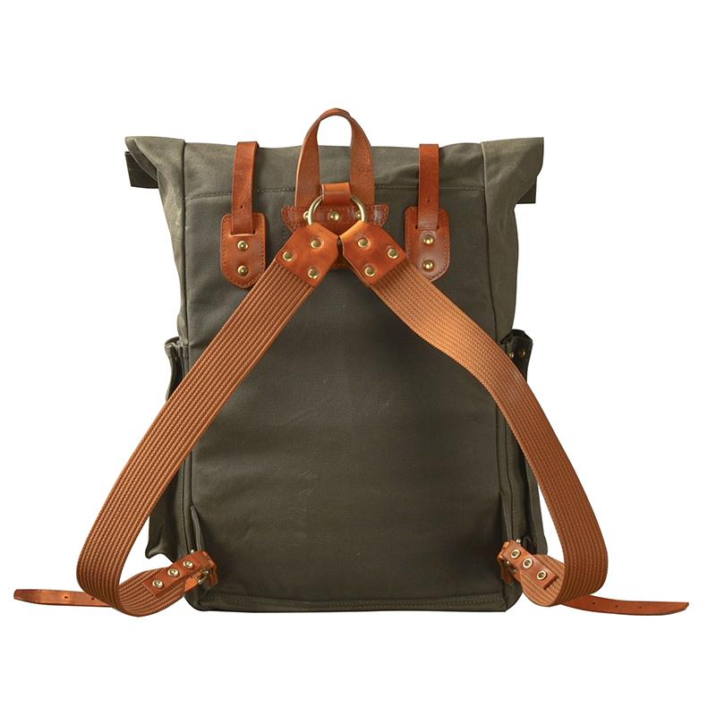 Design: Cool Canvas Leather Mens Womens 26" Army Green Hiking Backpack Travel Backpack College Backpack for Men