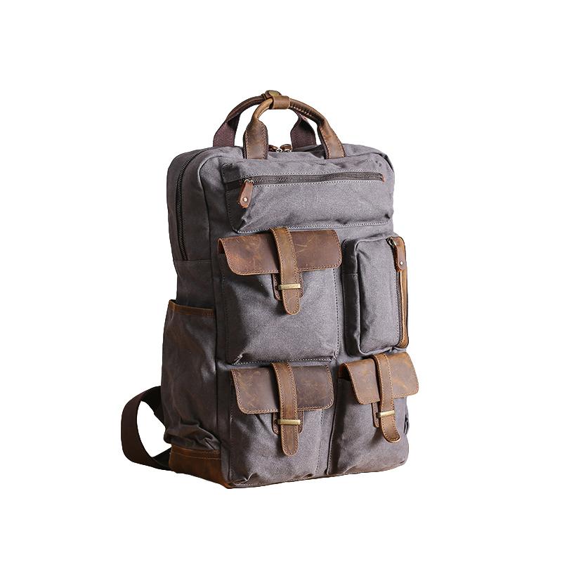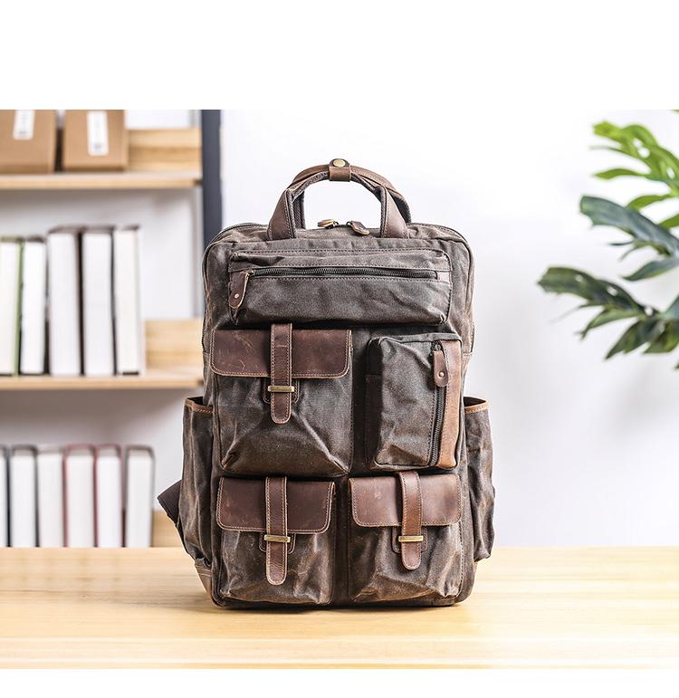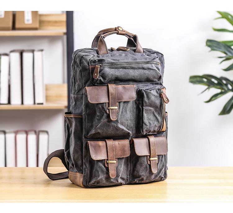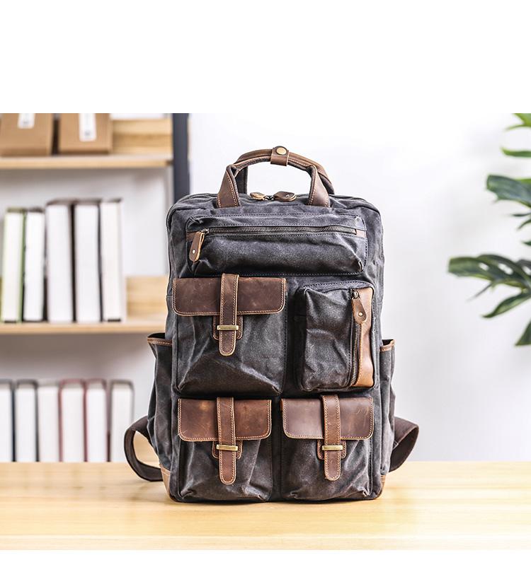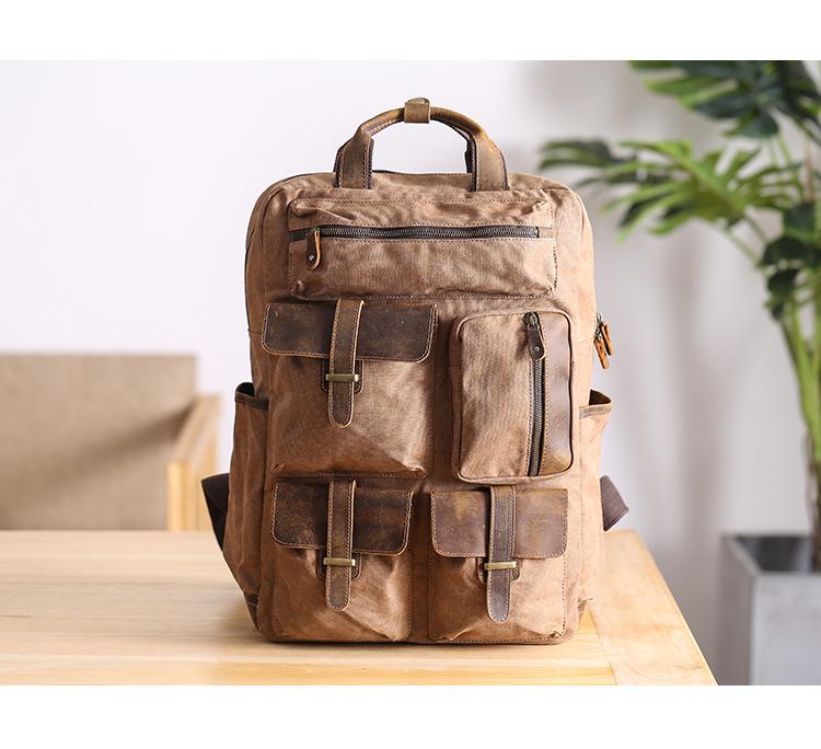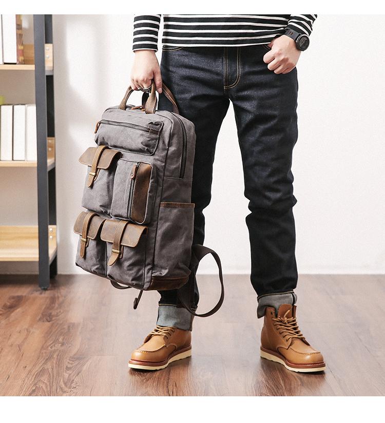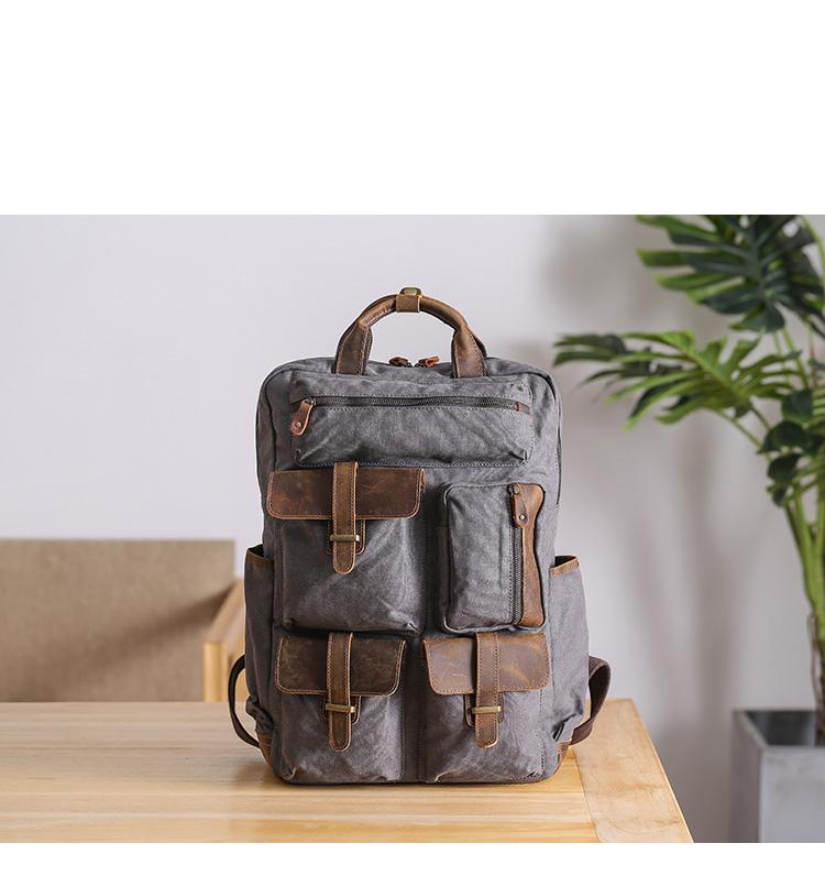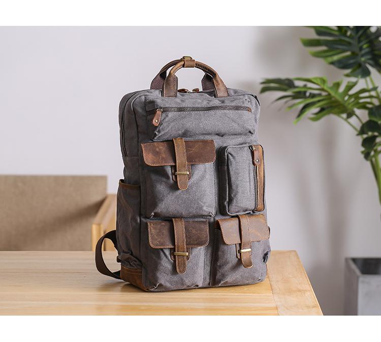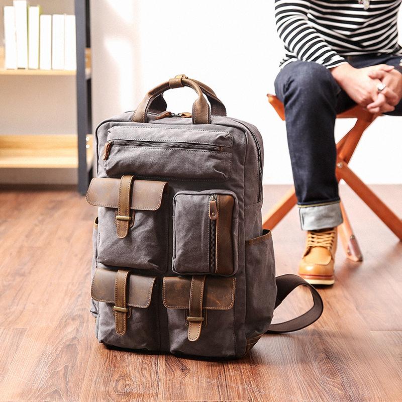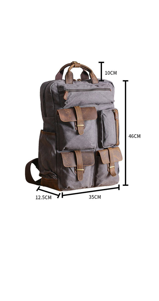 Design: Cool Canvas Leather Mens Womens Waterproof Brown Backpack Gray Travel Backpack College Backpack for Men