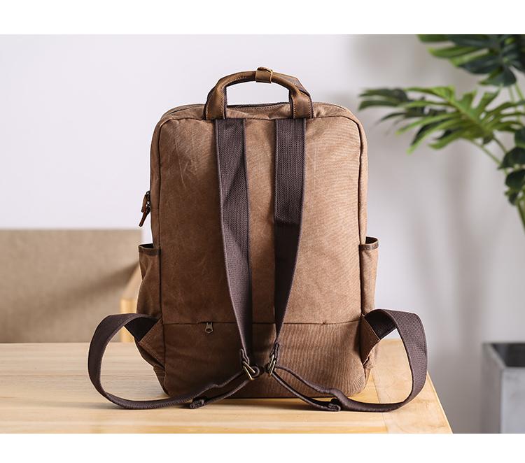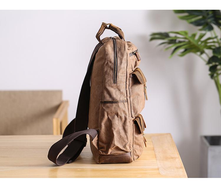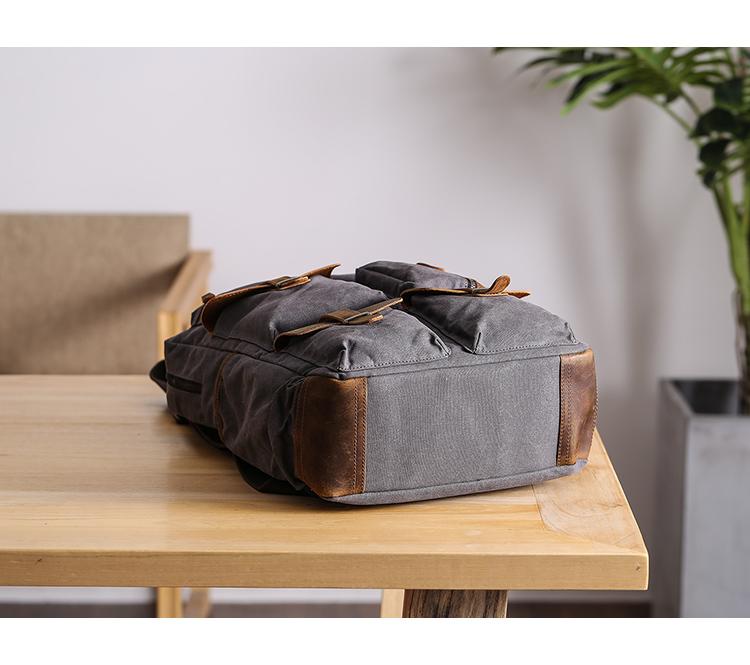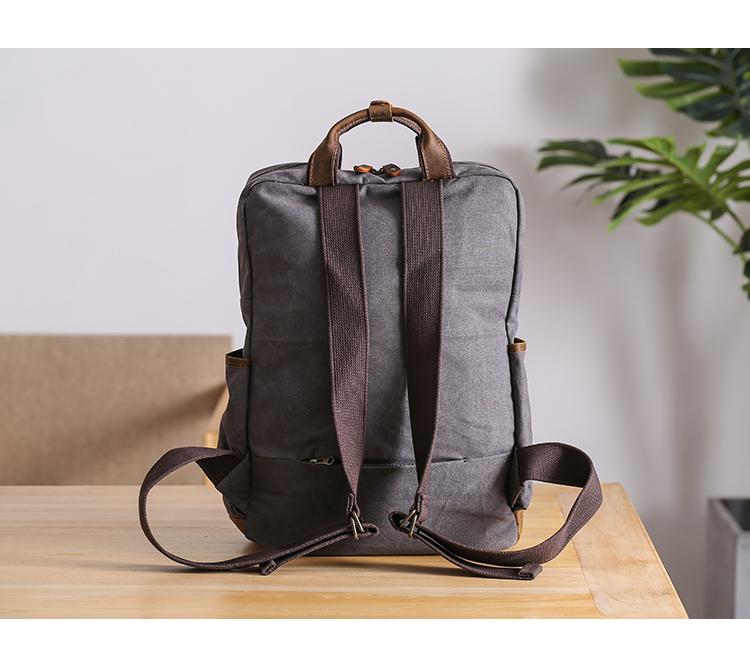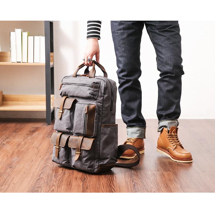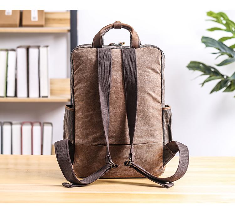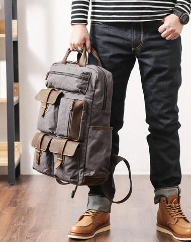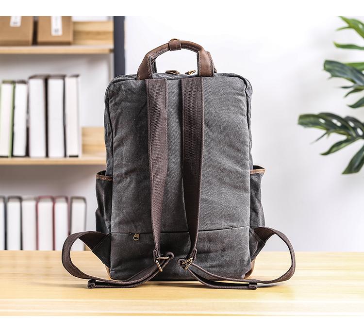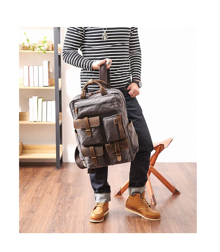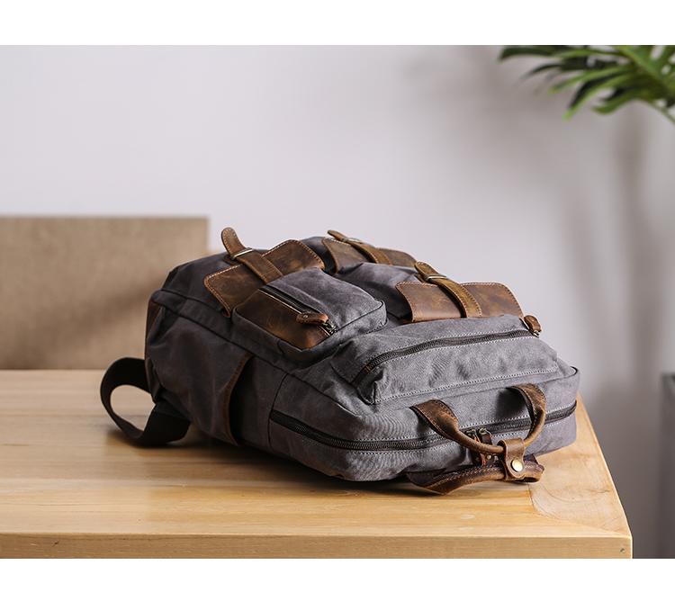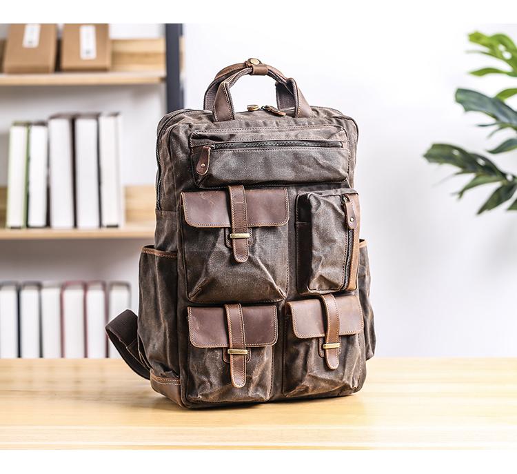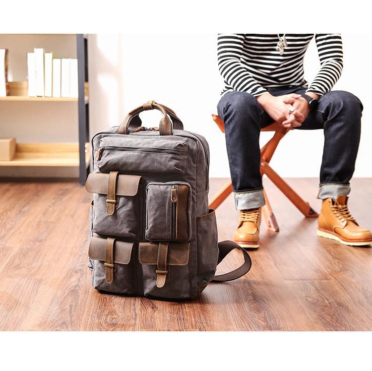 Design: Cool Canvas Leather Mens Womens Waterproof Brown Backpack Gray Travel Backpack College Backpack for Men