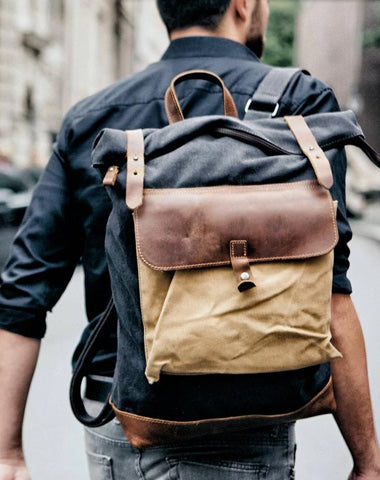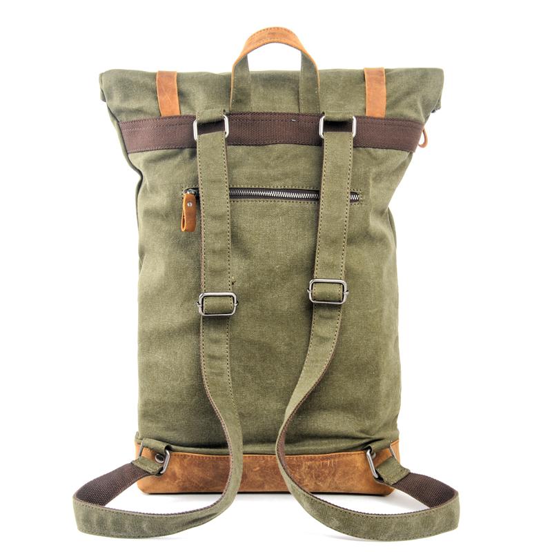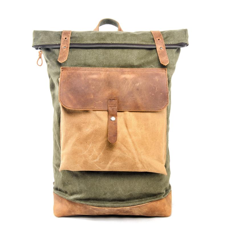 Cool Canvas Leather Mens Large Waterproof Green Backpack Travel Backpack Black Computer Backpack for Men