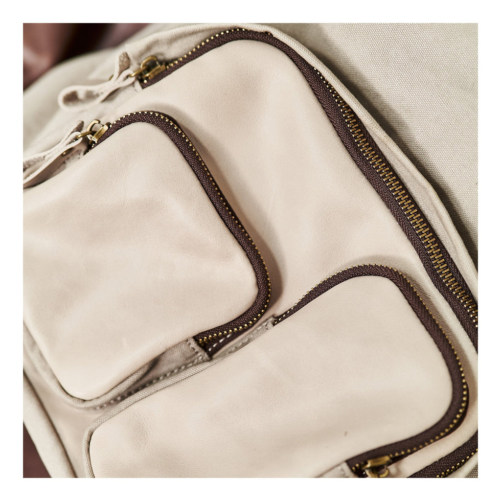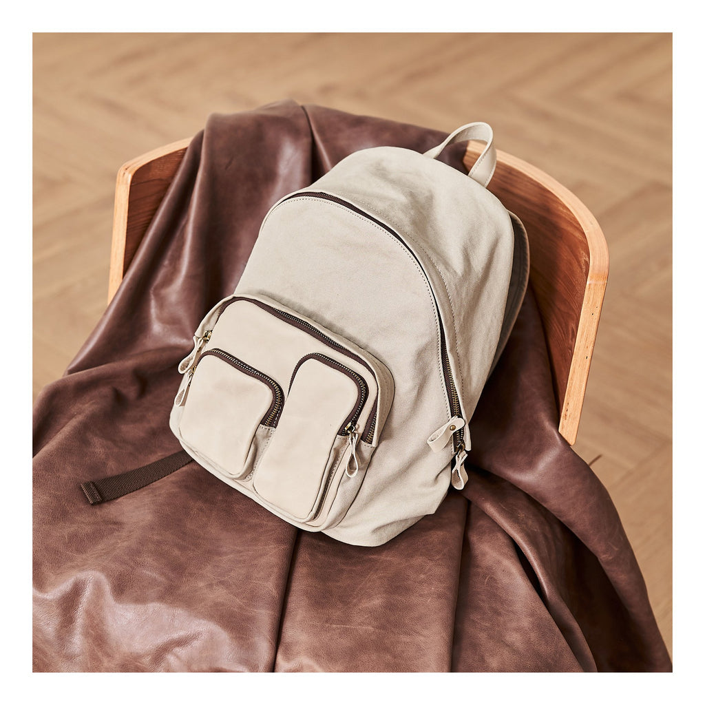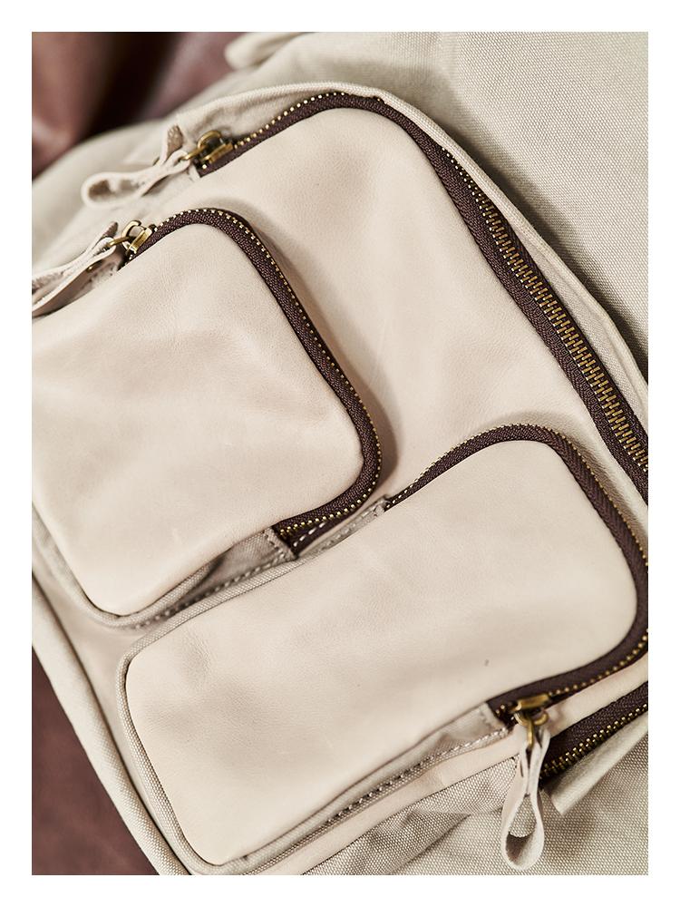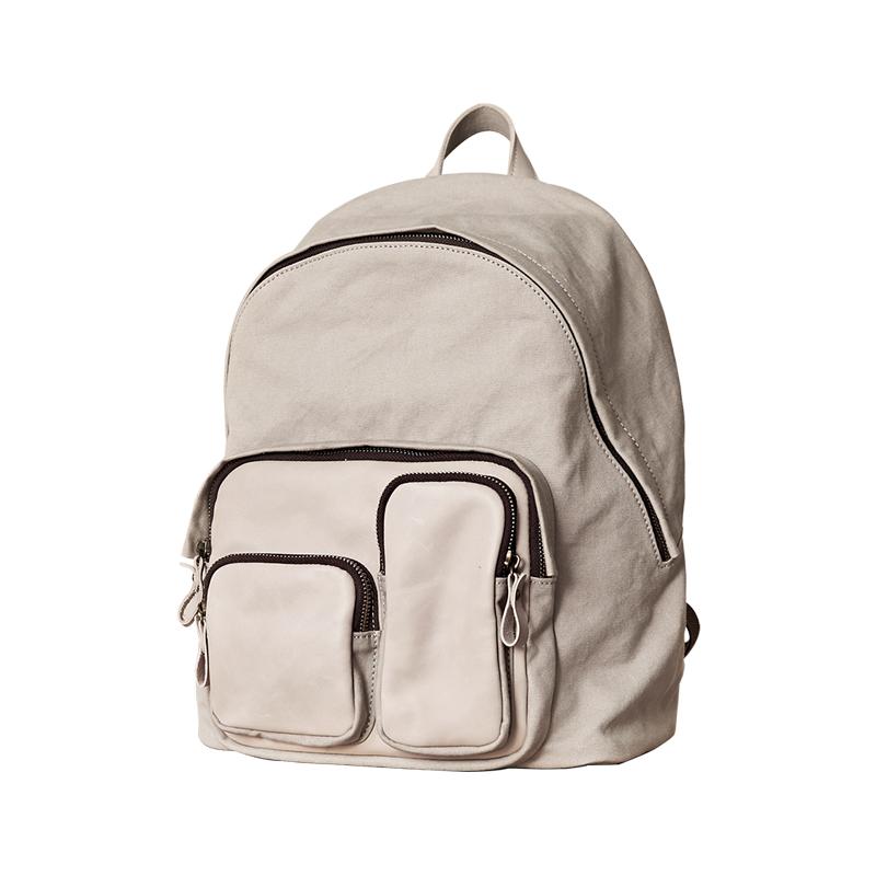 Design: Cool Canvas Light Gray Mens Backpack Canvas Brown Travel Bag Canvas School Bag for Men