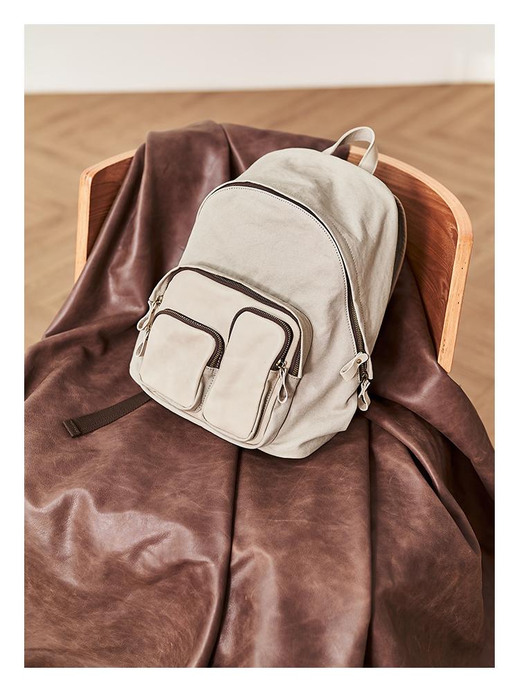 Style: Cool Canvas Light Gray Mens Backpack Canvas Brown Travel Bag Canvas School Bag for Men