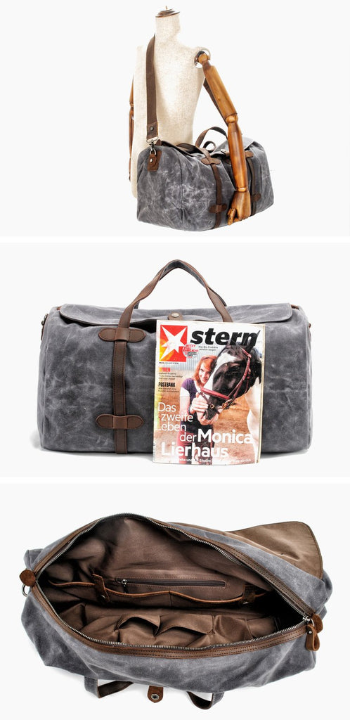 Style: Casual Waxed Canvas Mens Large Travel Waterproof Weekender Bag Shoulder Duffle Bag for Men