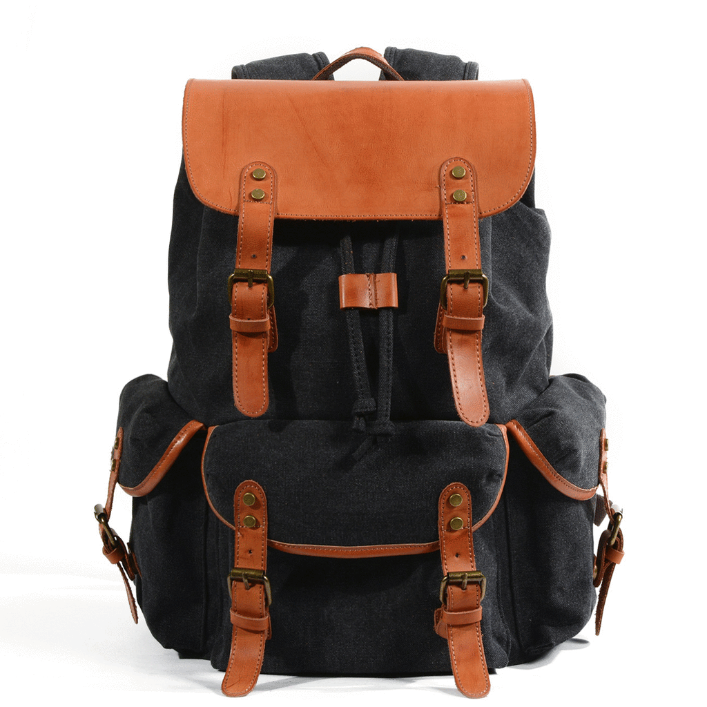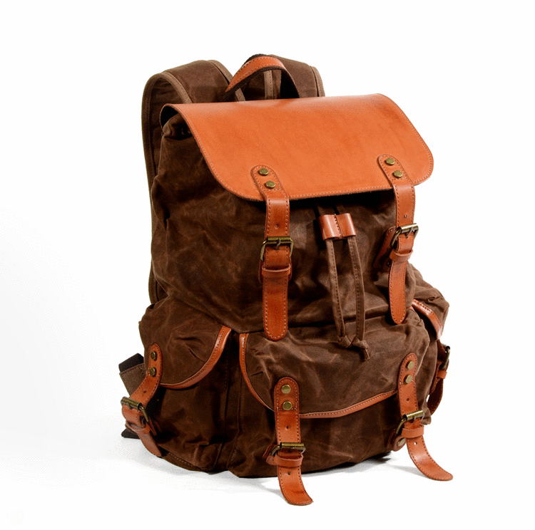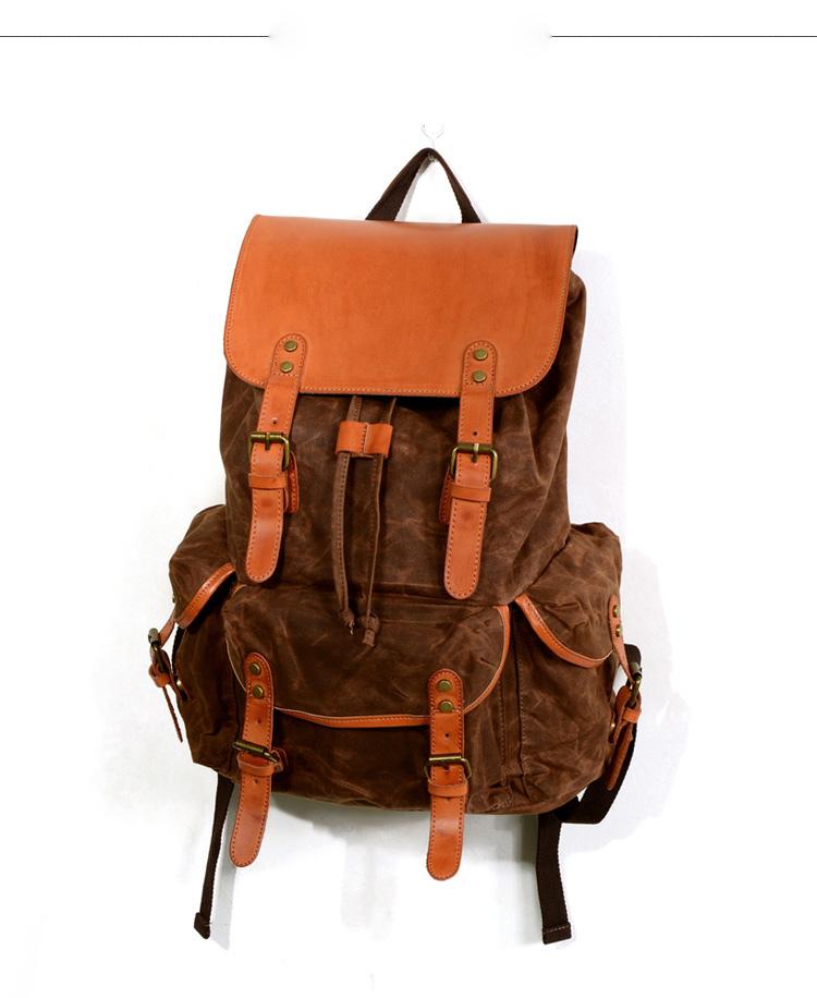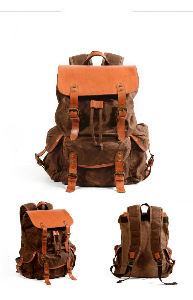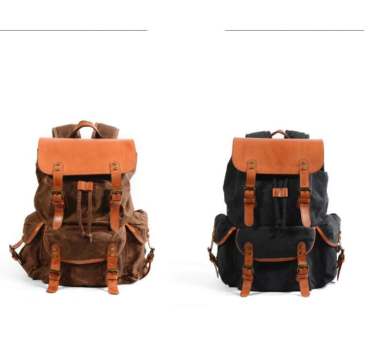 Design: Black Waxed Canvas Mens Waterproof Large Hiking Bag Travel Bag 15.6‘’ Computer Bag for Men