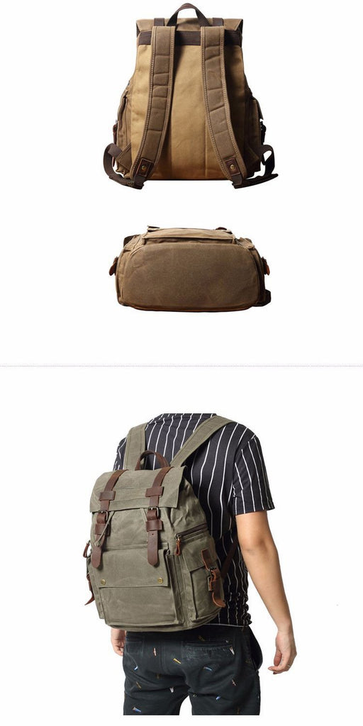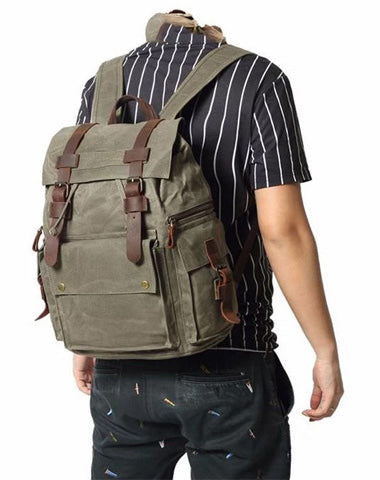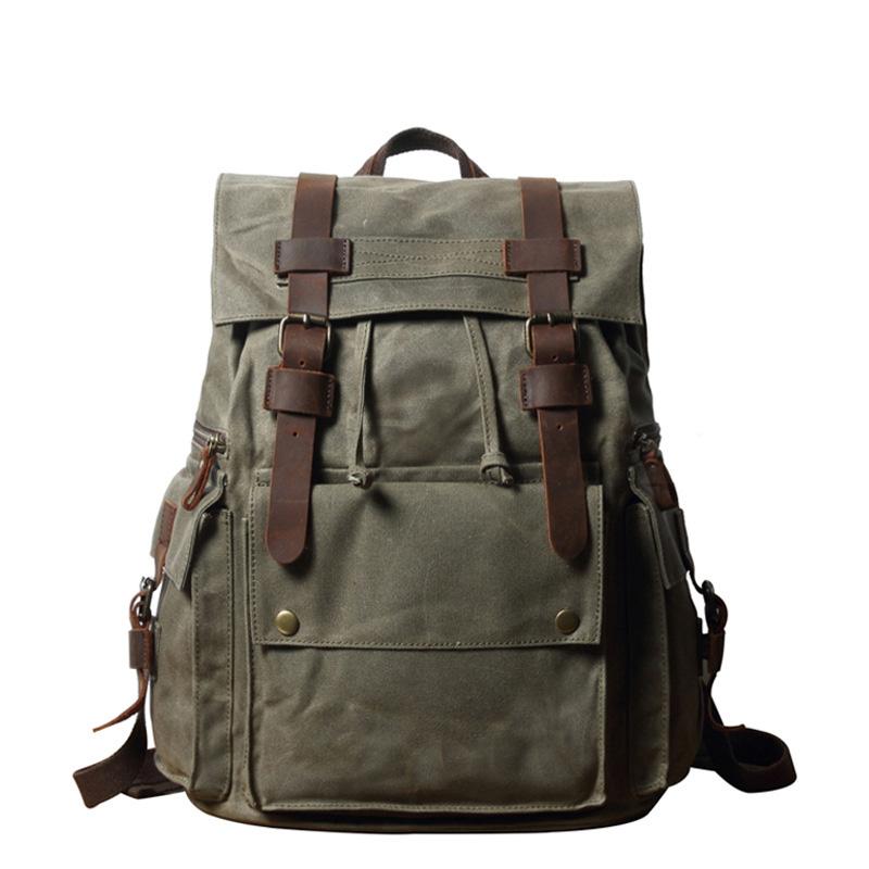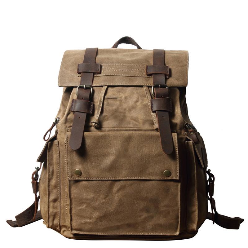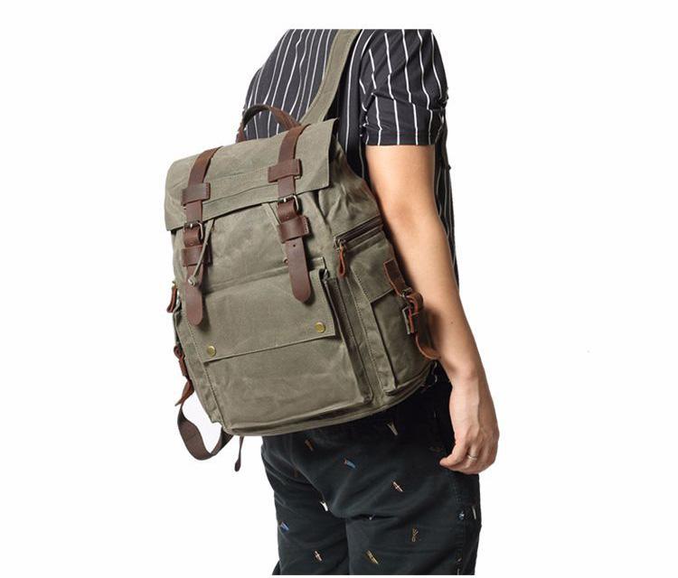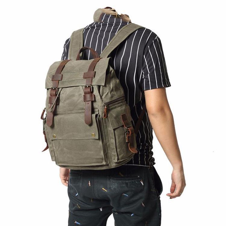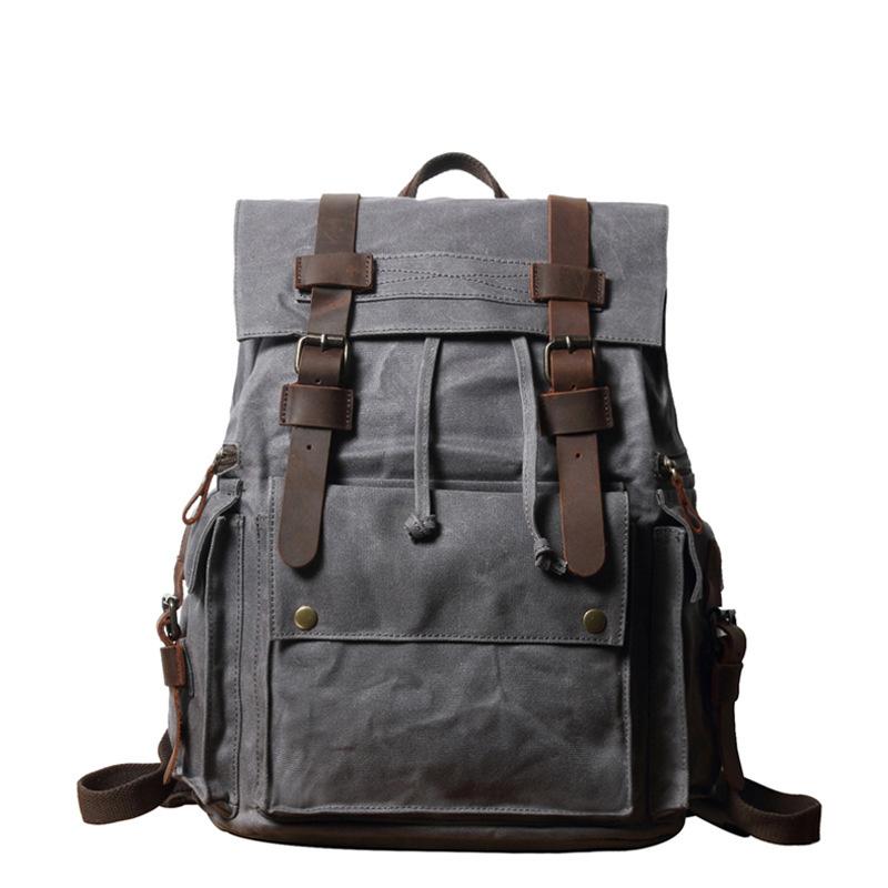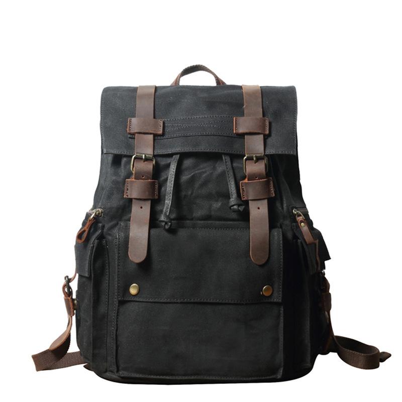 Design: Cool Waxed Canvas Retro Mens Black Large 15‘’ Travel Backpack Computer Backpack Hiking Backpack for Men