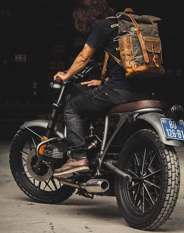 Style: Cool Canvas Leather Mens Green Large Waterproof Travel Backpack Computer Hiking Backpack for Men