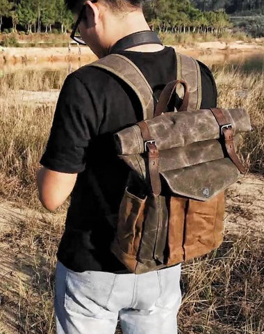 Style: Cool Canvas Retro Mens Large Waterproof Travel Bag Computer Bag Student Backpack for Men