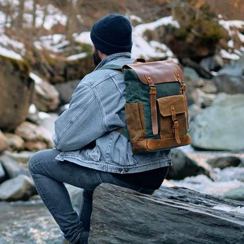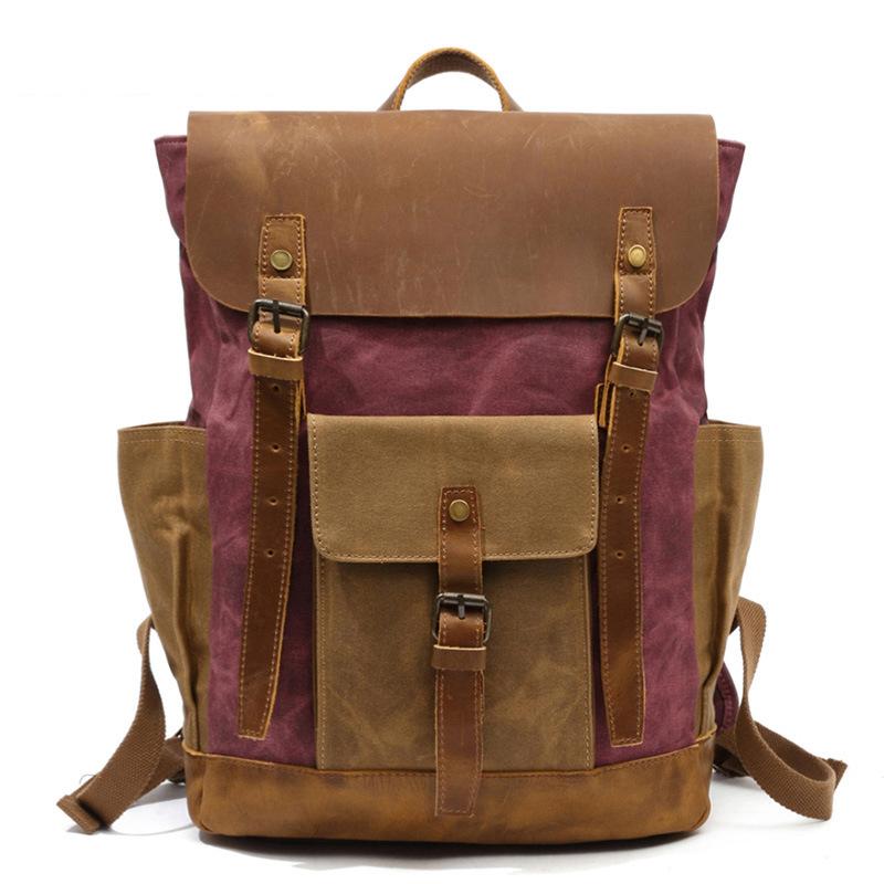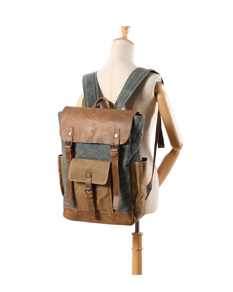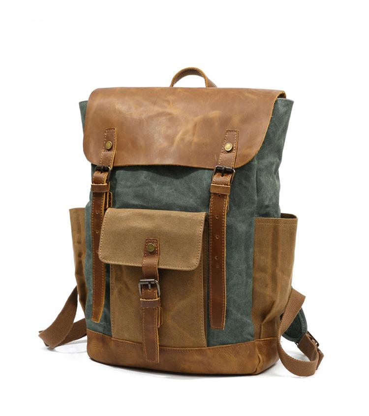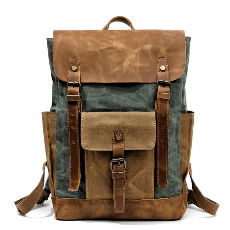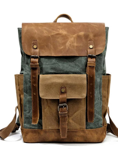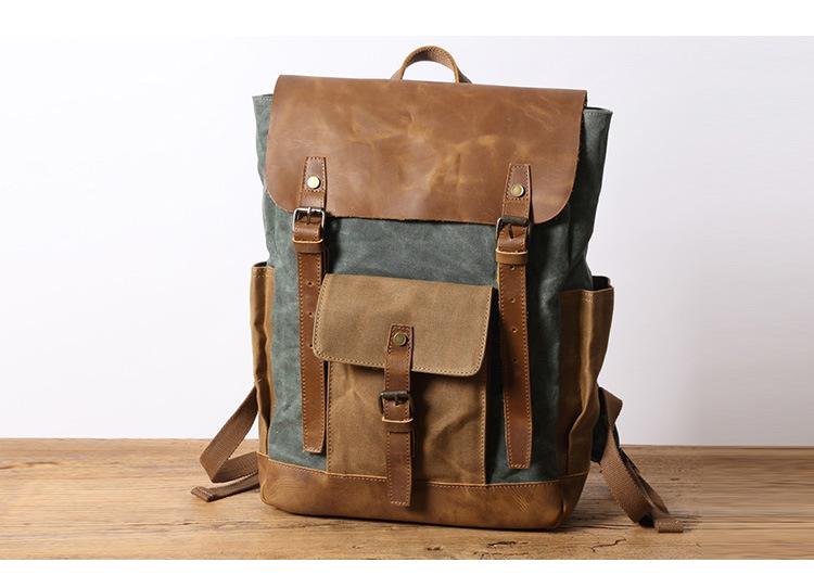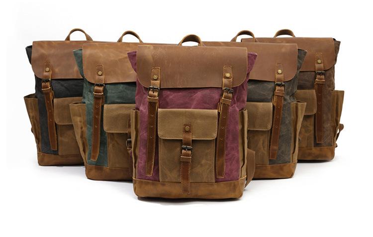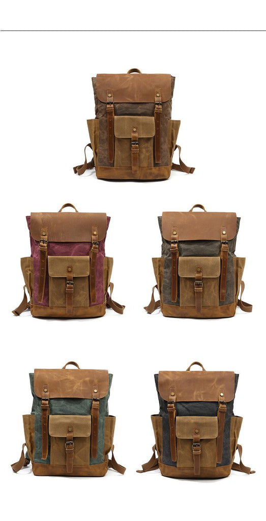Style: Cool Canvas Waxed Mens Waterproof Large Travel Backpack Computer Hiking Backpack for Men