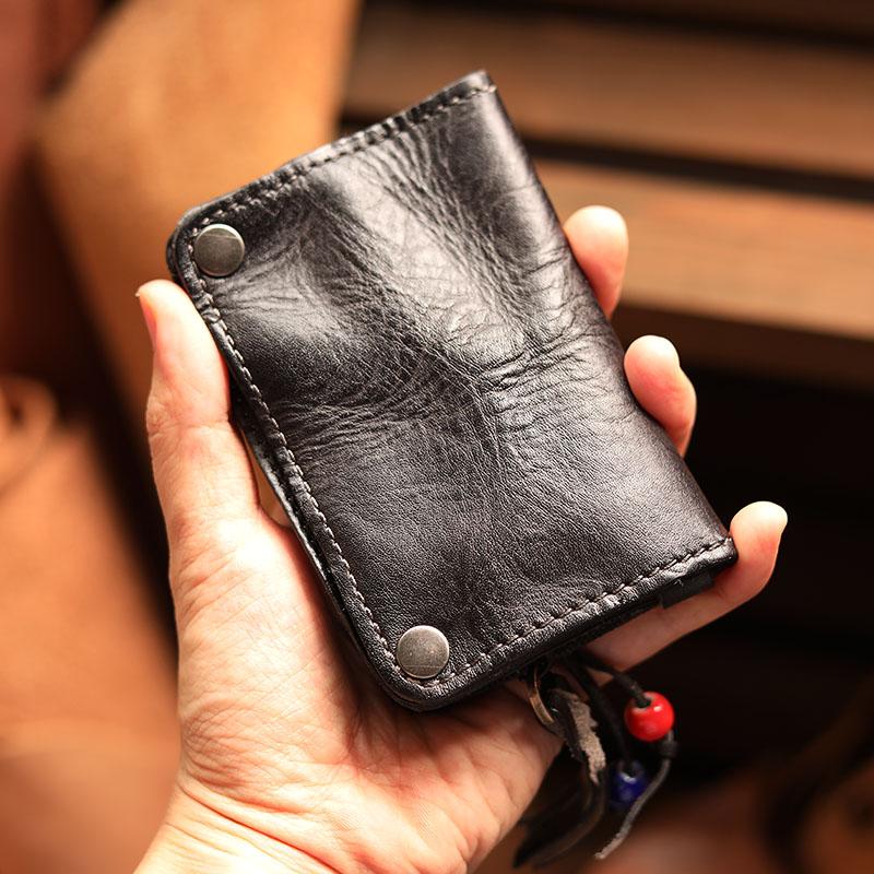 Design: Cool Charcoal Leather Mens billfold Wallet Bifold SMall Wallet Black Front Pocket Wallet For Men