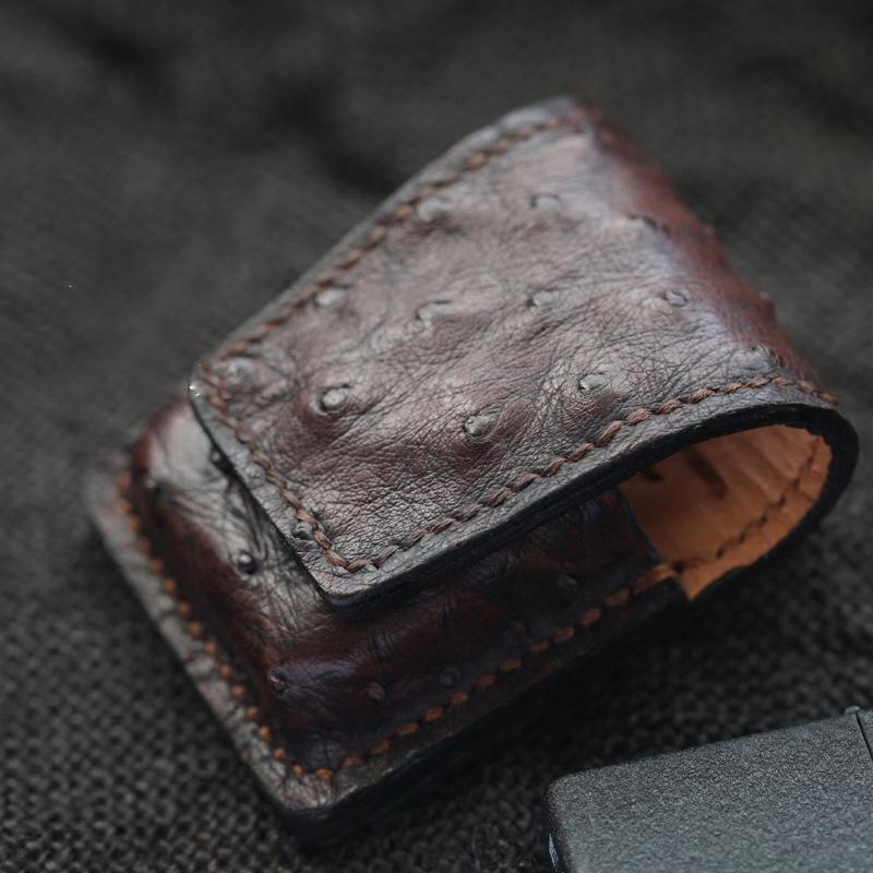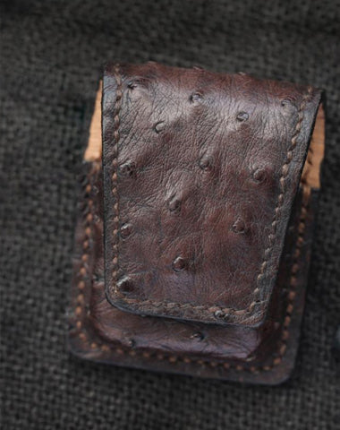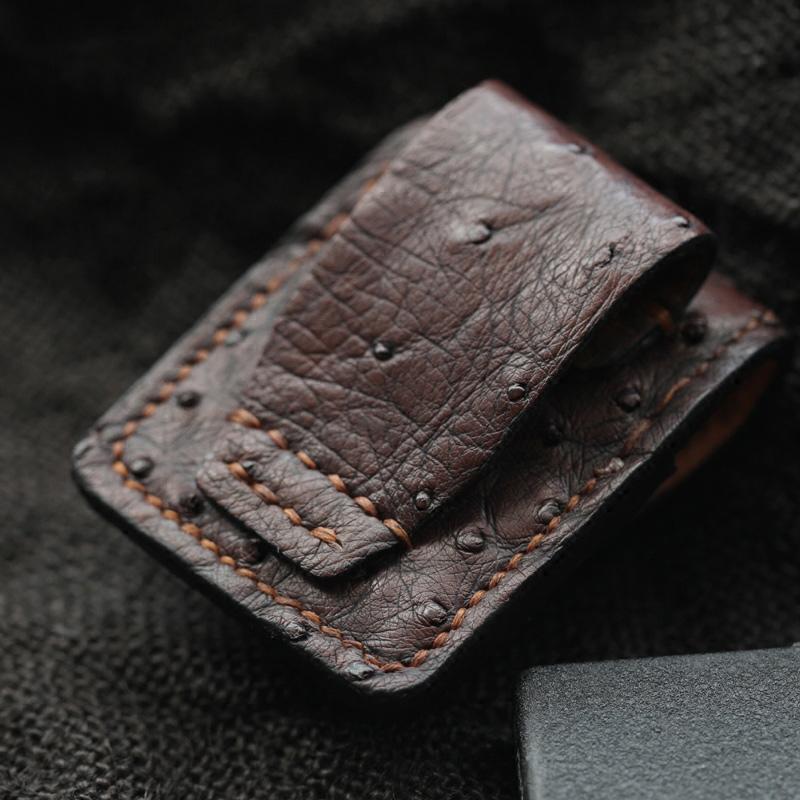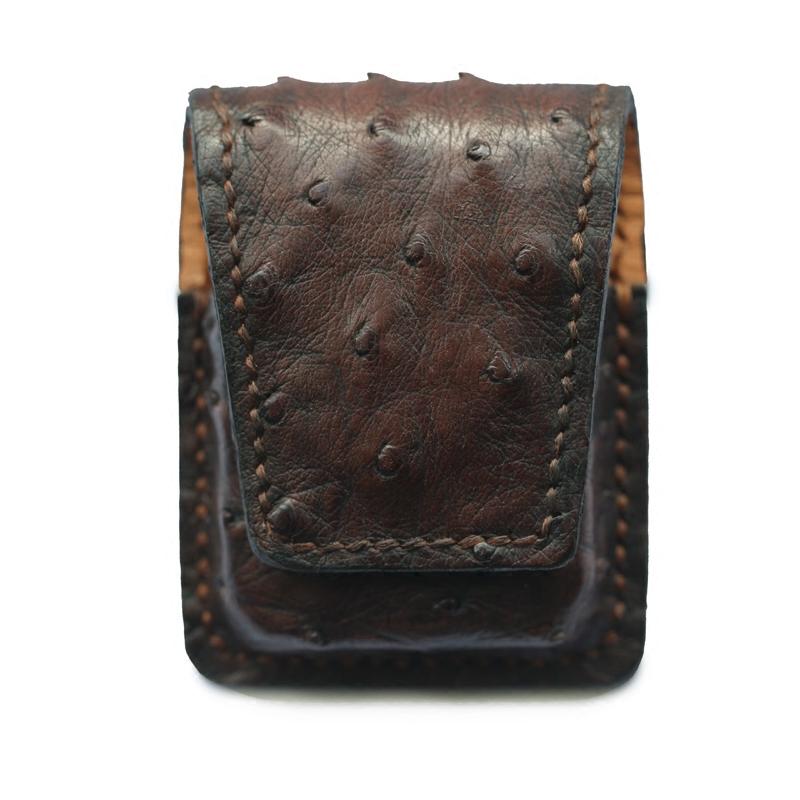Design: Cool Chocolate Ostrich Leather Mens Zippo Lighter Cases With Belt Loop Lighter Holders For Men