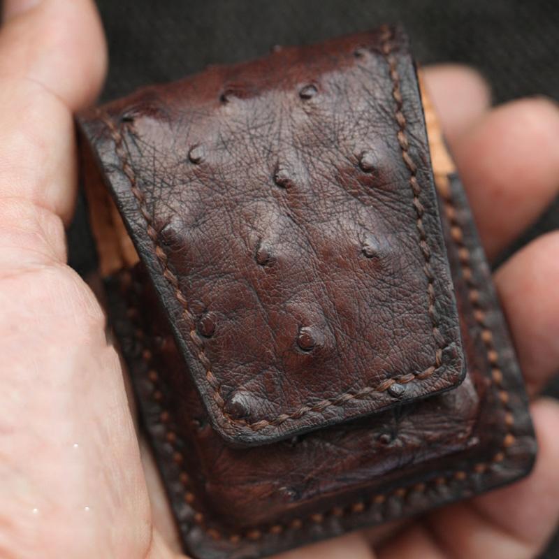 Style: Cool Chocolate Ostrich Leather Mens Zippo Lighter Cases With Belt Loop Lighter Holders For Men