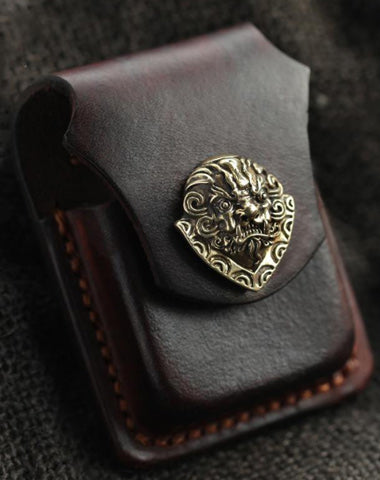 Design: Cool Coffee Handmade Leather Mens Zippo Lighter Cases Holster Belt Loop Lighter Holders For Men