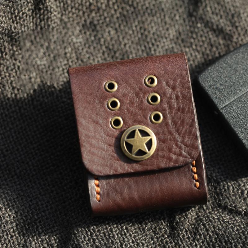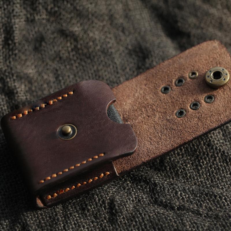 Design: Cool Coffee Handmade Leather Mens Zippo Lighter Cases Zippo Belt Loop Lighter Holders For Men