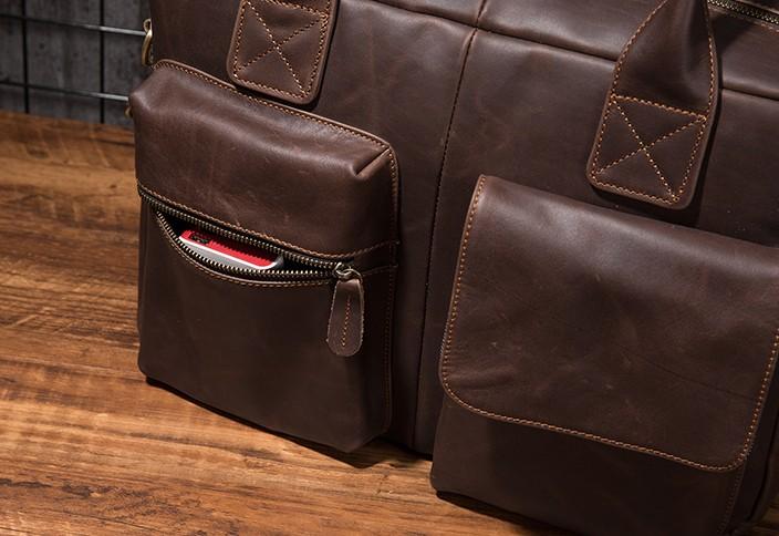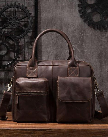 Design: Cool Coffee Leather Mens Briefcase Work Handbag Laptop Bag Business Bag for Men
