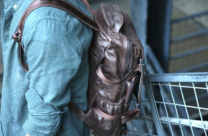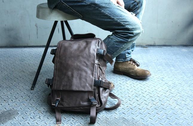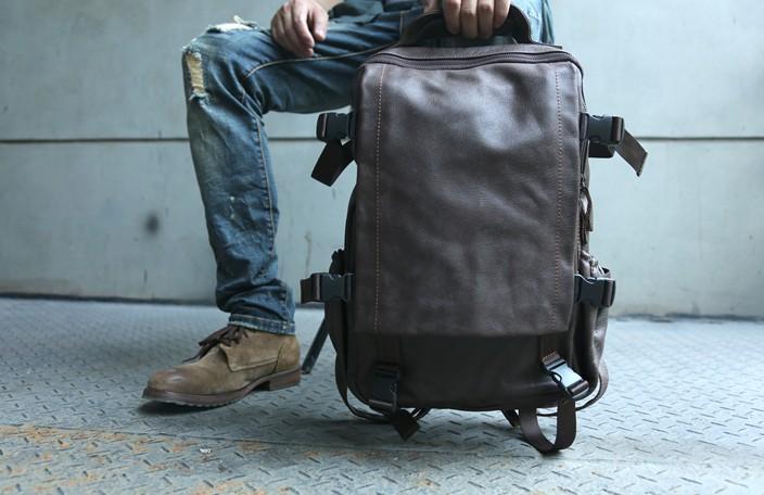 Style: Cool Coffee Mens Leather Backpack Travel Backpacks Laptop Backpack for men