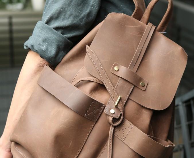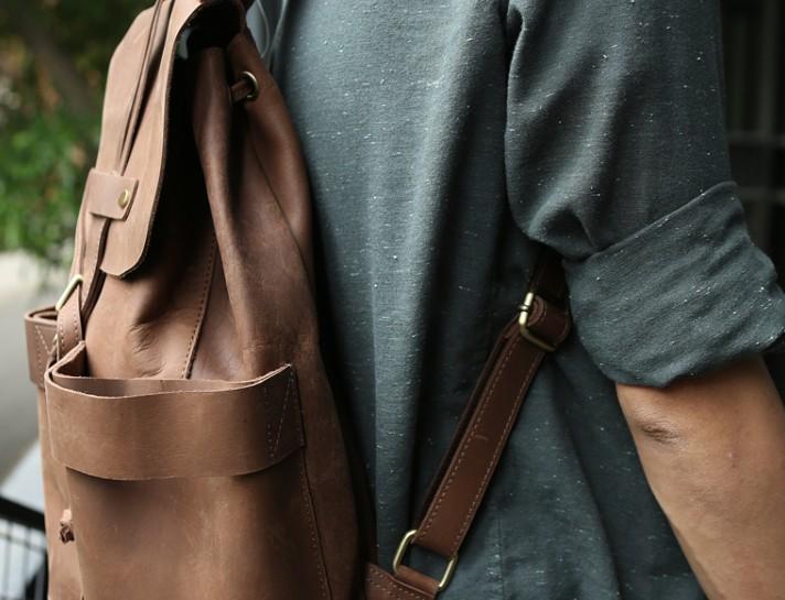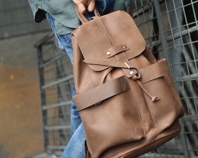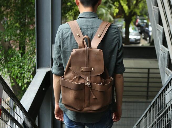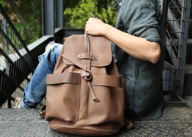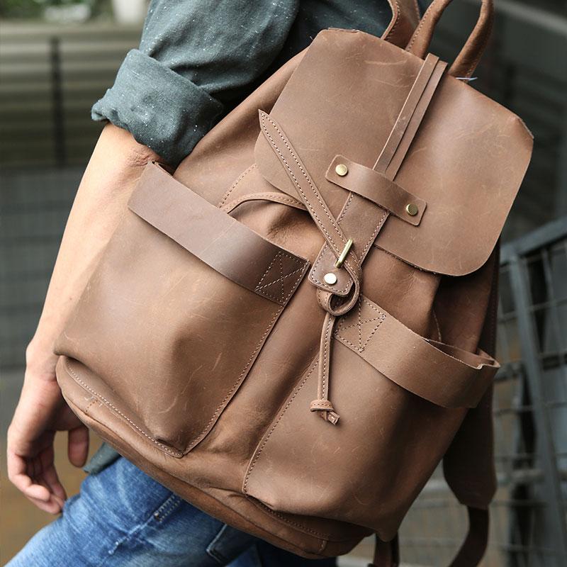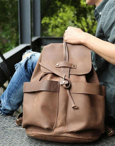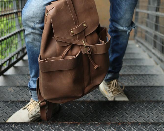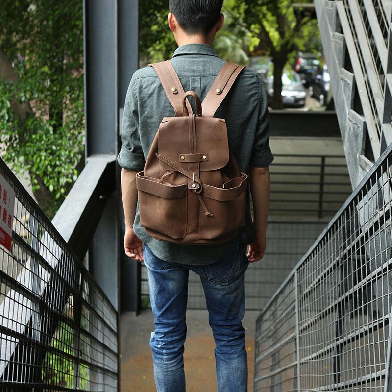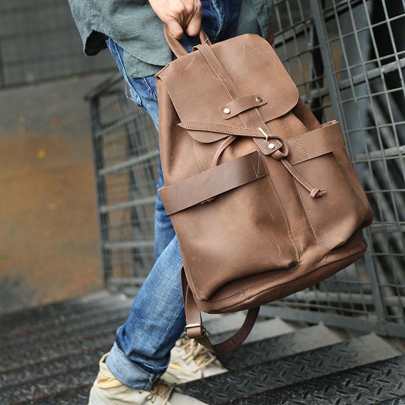 Style: Cool Coffee Mens Leather Backpack Travel Backpacks Laptop Backpacks for men