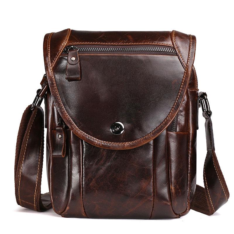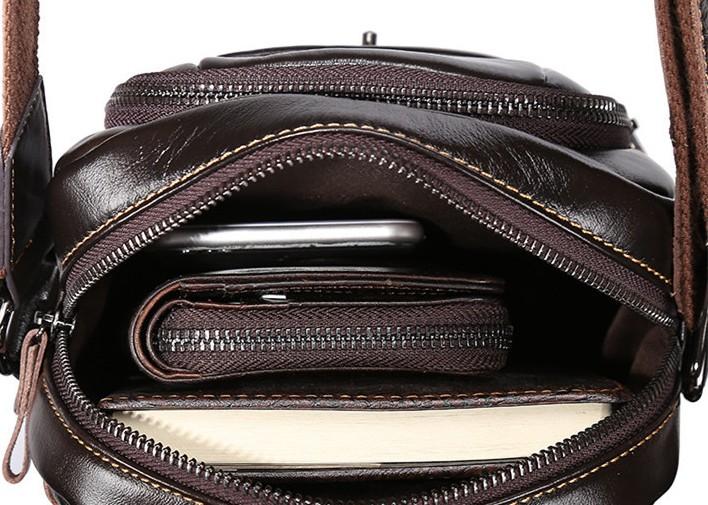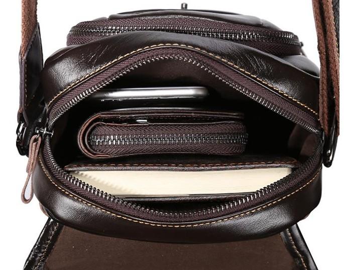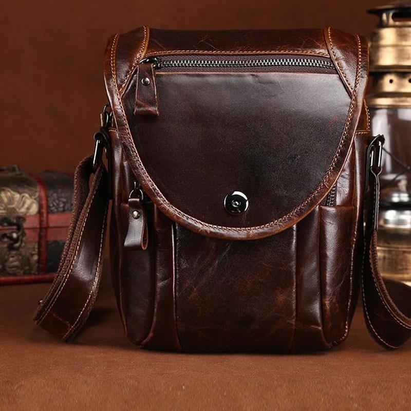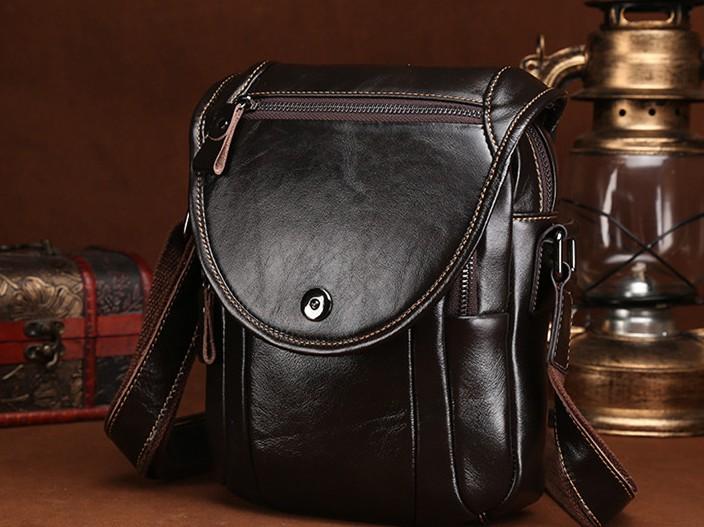 Design: Cool Coffee Small Mens Leather Side Bag Messenger Bag Shoulder Bag for Men