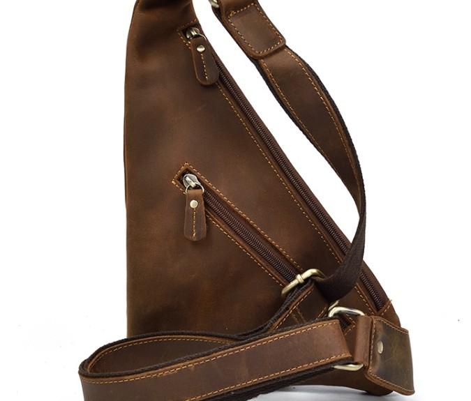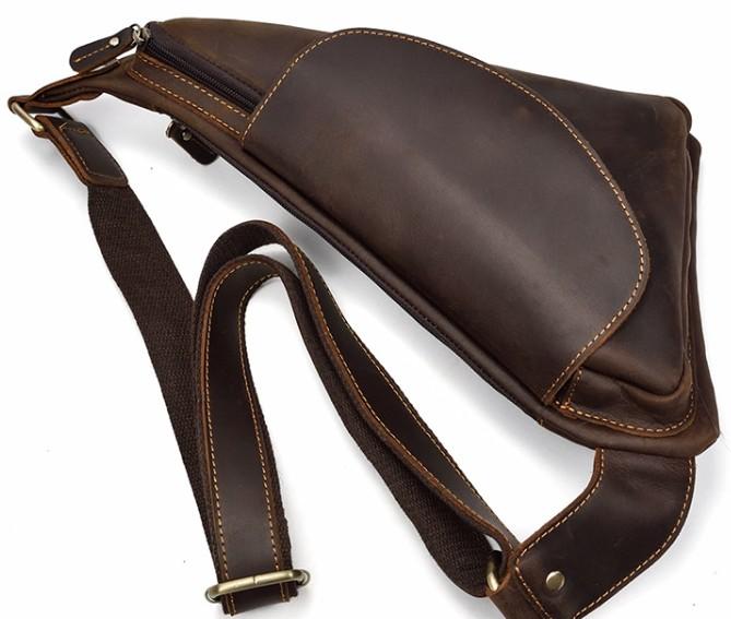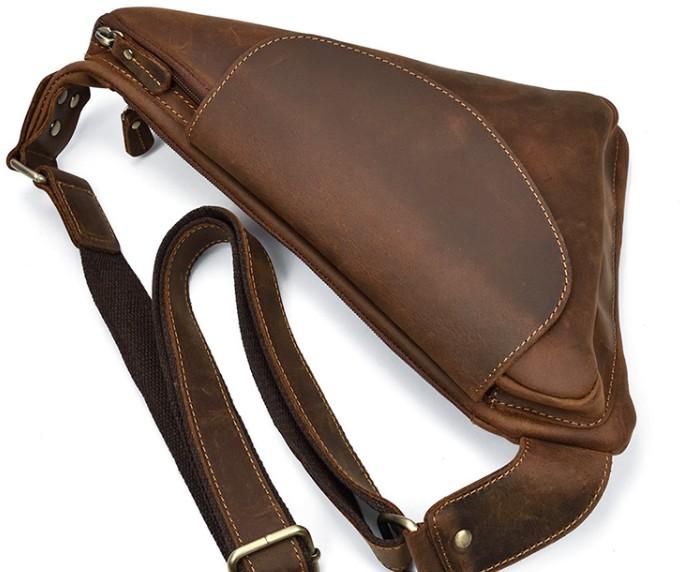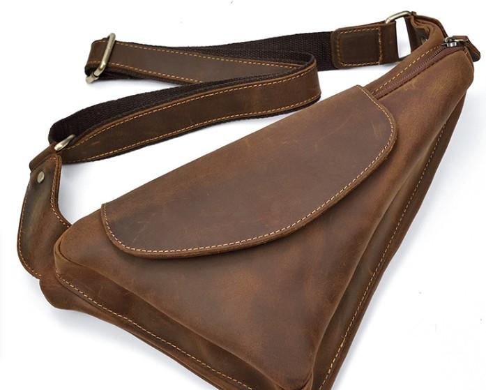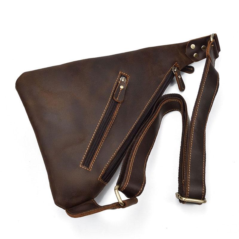 Design: Cool Triangular Leather Mens Sling Bag Chest Bag Sling Crossbody Bag One Shoulder Backpack For Mens