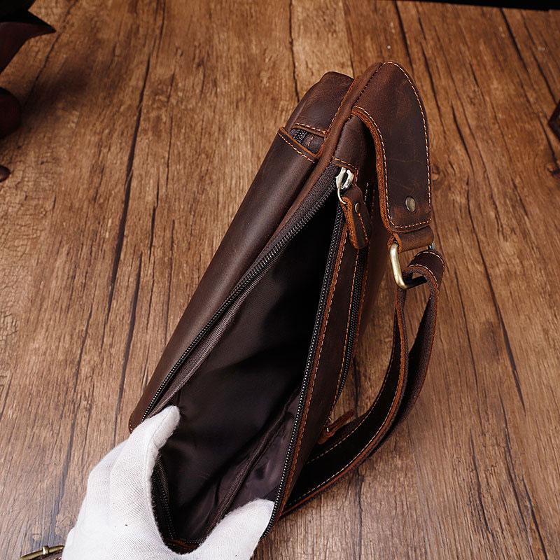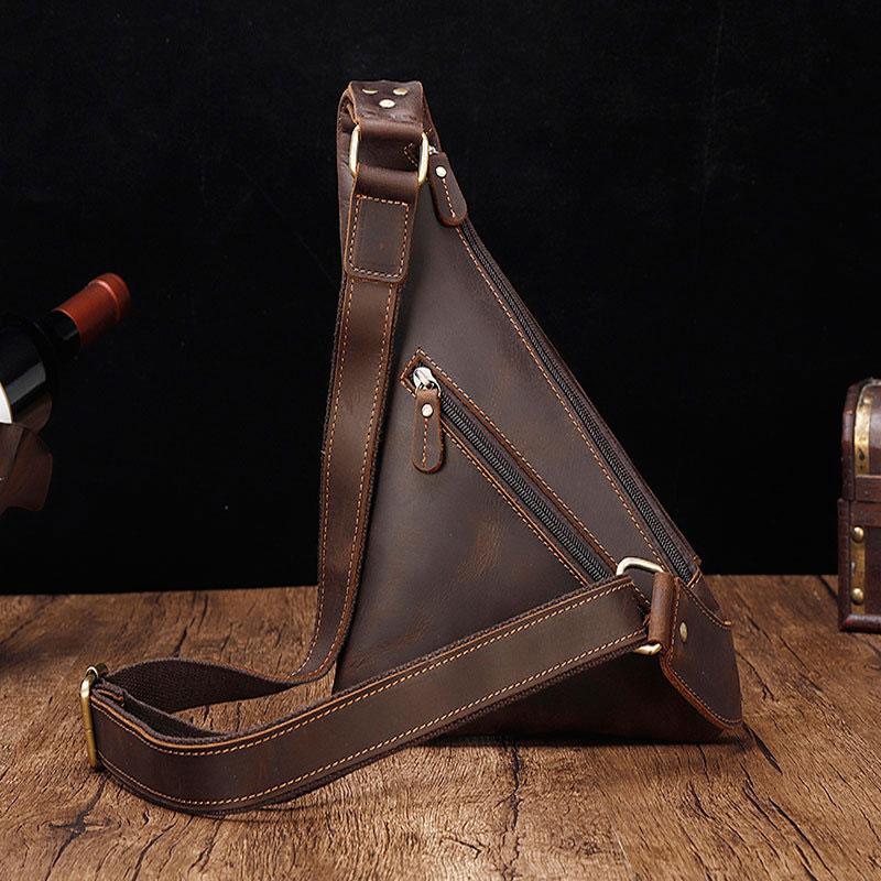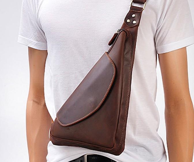 Style: Genuine Leather Cool Chest Bag Sling Bag Crossbody Bag Travel Bag Hiking Bag For Mens