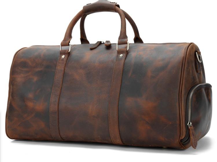 Design: Black Leather Men Large Overnight Bag Travel Bags Weekender Bags For Men