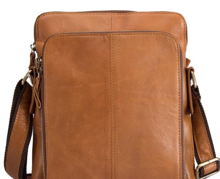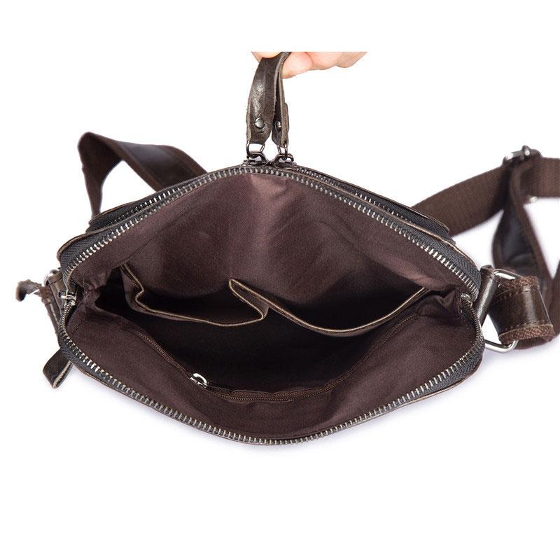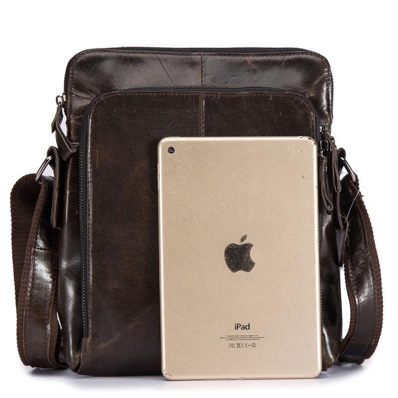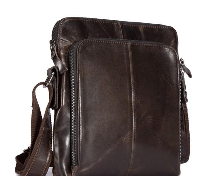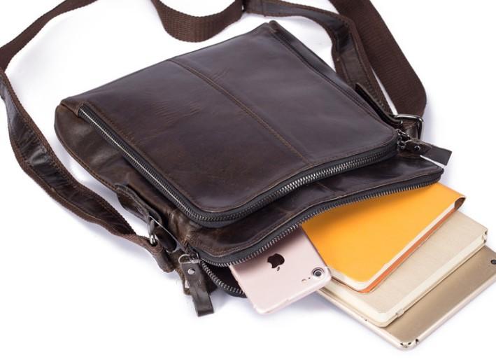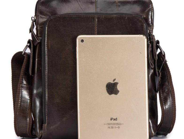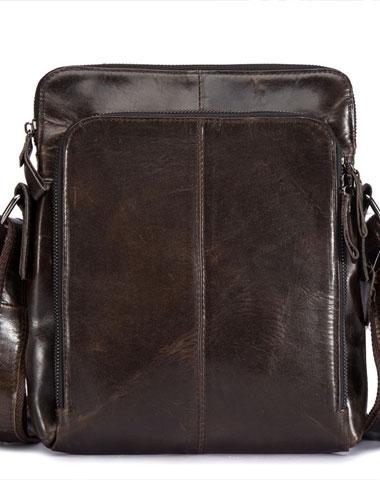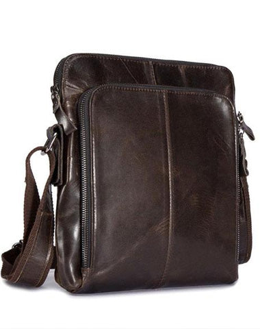 Design: Cool Dark Brown Leather Mens Tablet Messenger Bag Small Side Bag Messenger Bag For Men