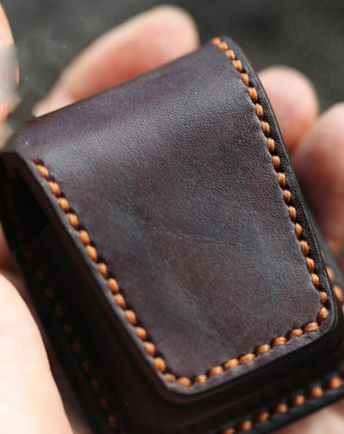 Style: Cool Dark Brown Handmade Leather Mens Lighter Case Lighter Holders For Men