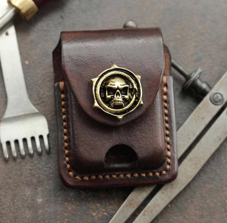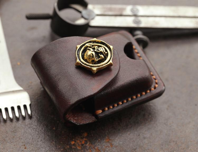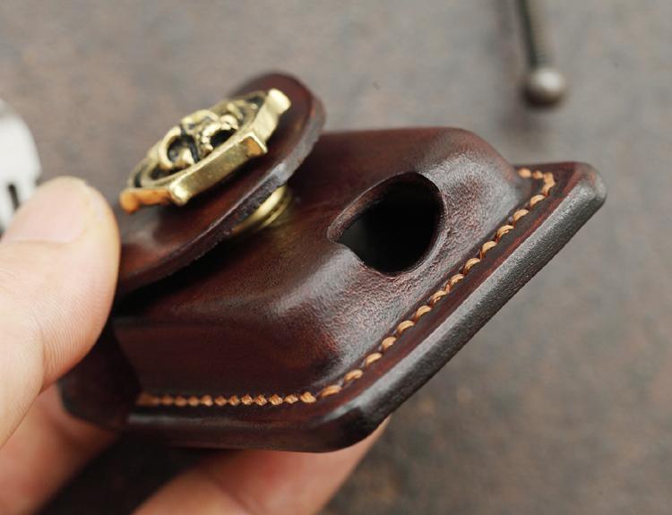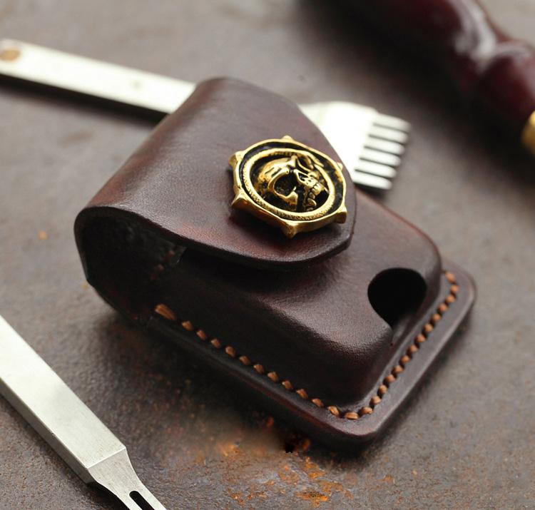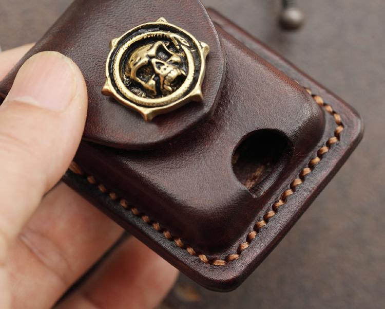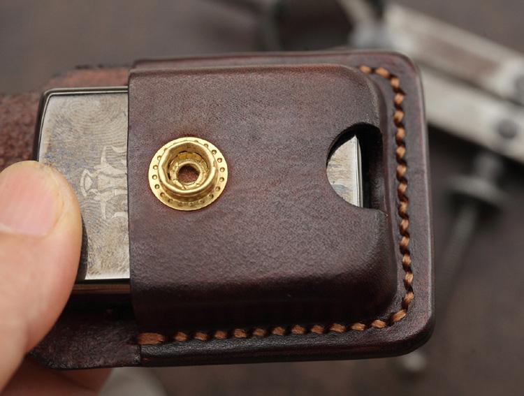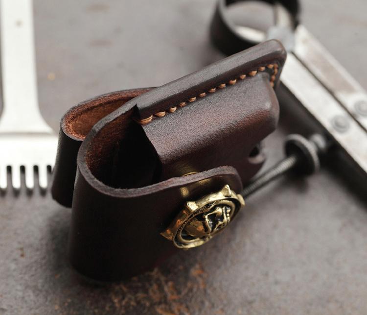 Design: Cool Dark Brown Leather Mens Holster Zippo Lighter Cases Standard Zippo Lighter Holder For Men