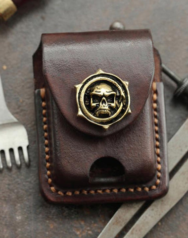 Style: Cool Dark Brown Leather Mens Holster Zippo Lighter Cases Standard Zippo Lighter Holder For Men
