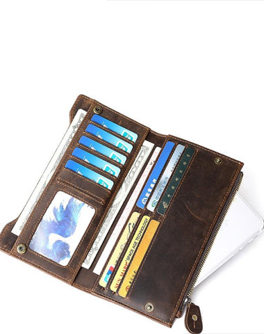 Design: Cool Dark Brown Mens Leather Large Long Wallet Bifold Long Multi-Card Wallet for Men