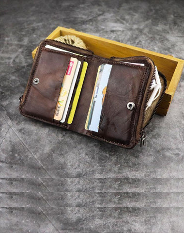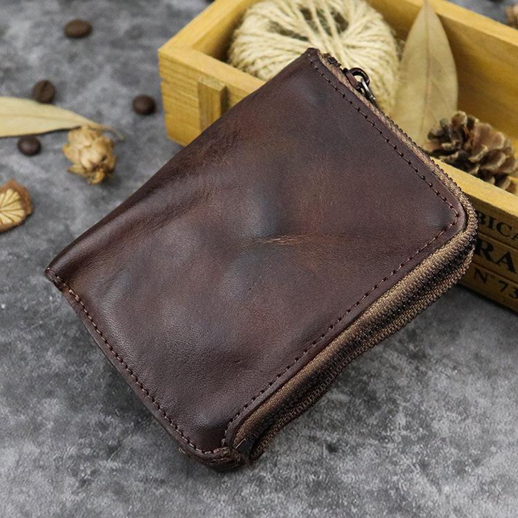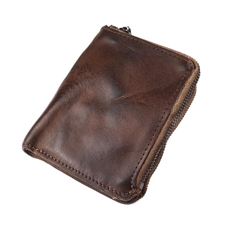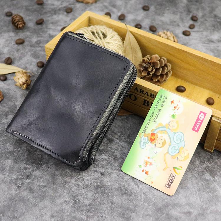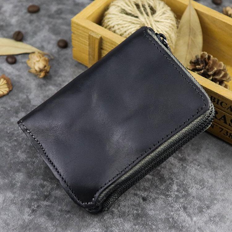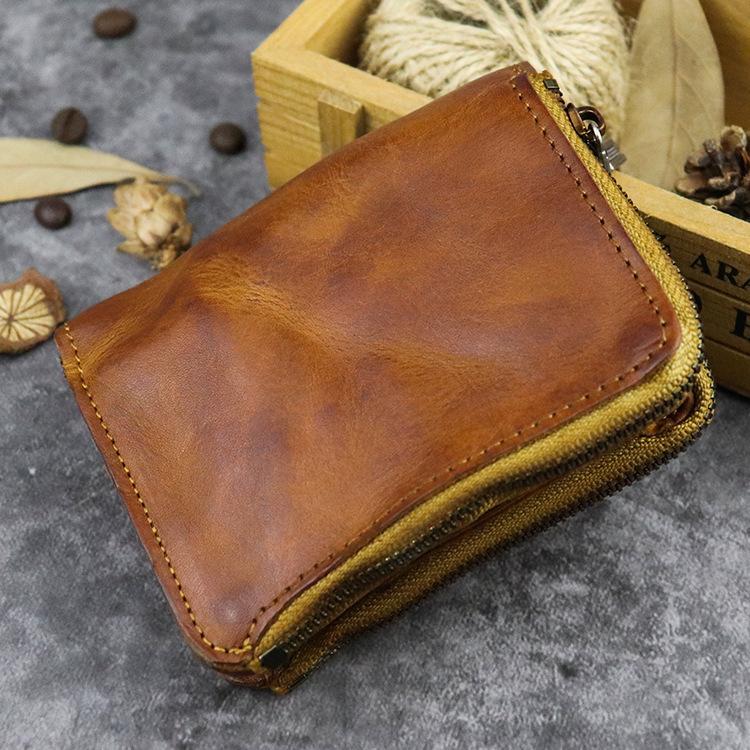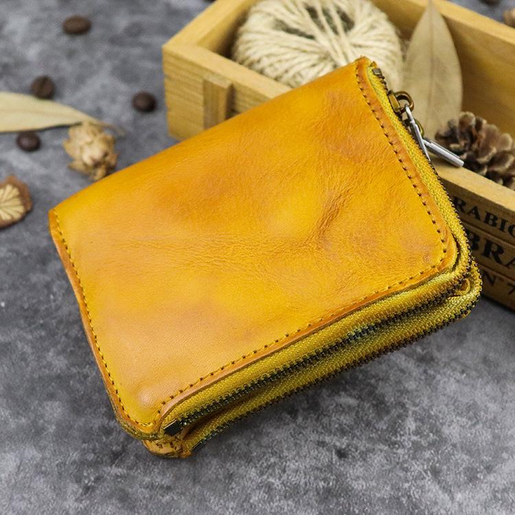 Style: Cool Dark Gray Handmade Leather Men's Yellow Zipper billfold Wallet Bifold Card Wallet For Men