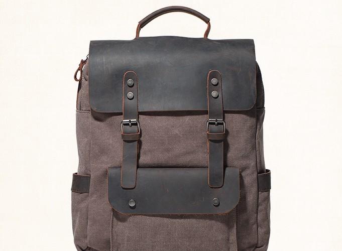 Design: Canvas Gray Mens Cool Backpack Canvas Travel Bag Canvas School Bag for Men