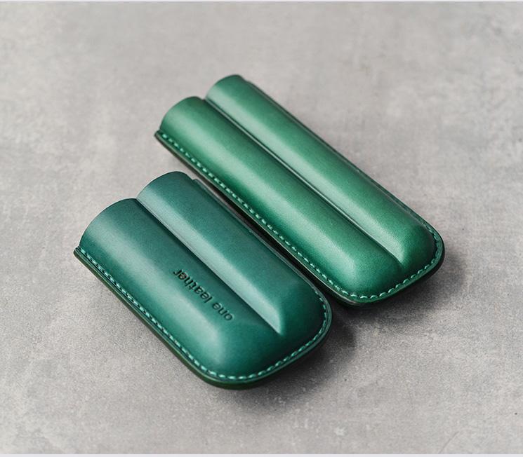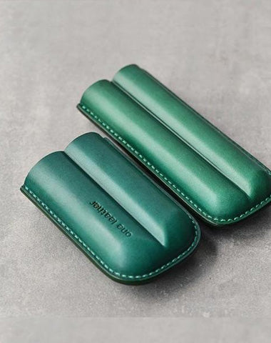 Style: Cool Green Leather Mens 2pcs Cigar Case Cool Custom Leather Cigar Case for Men