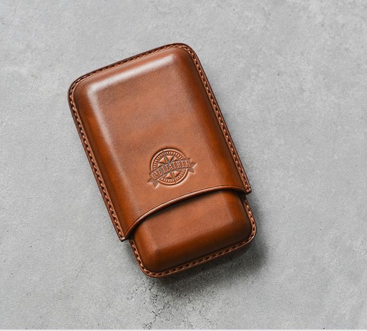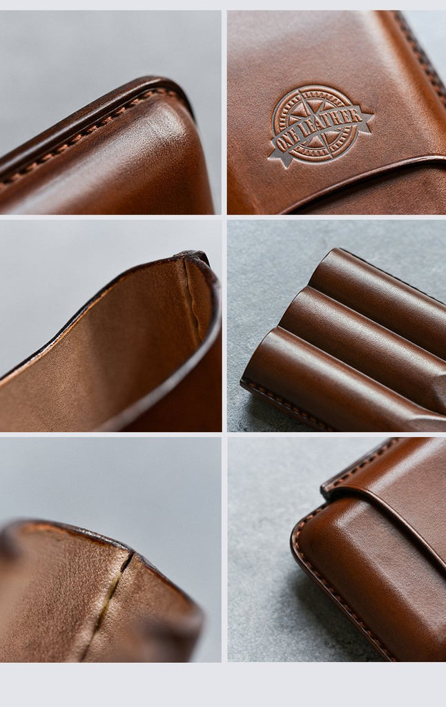 Style: Cool Beige Leather Mens 3pcs Cigar Case Cool Custom Leather Cigar Case for Men