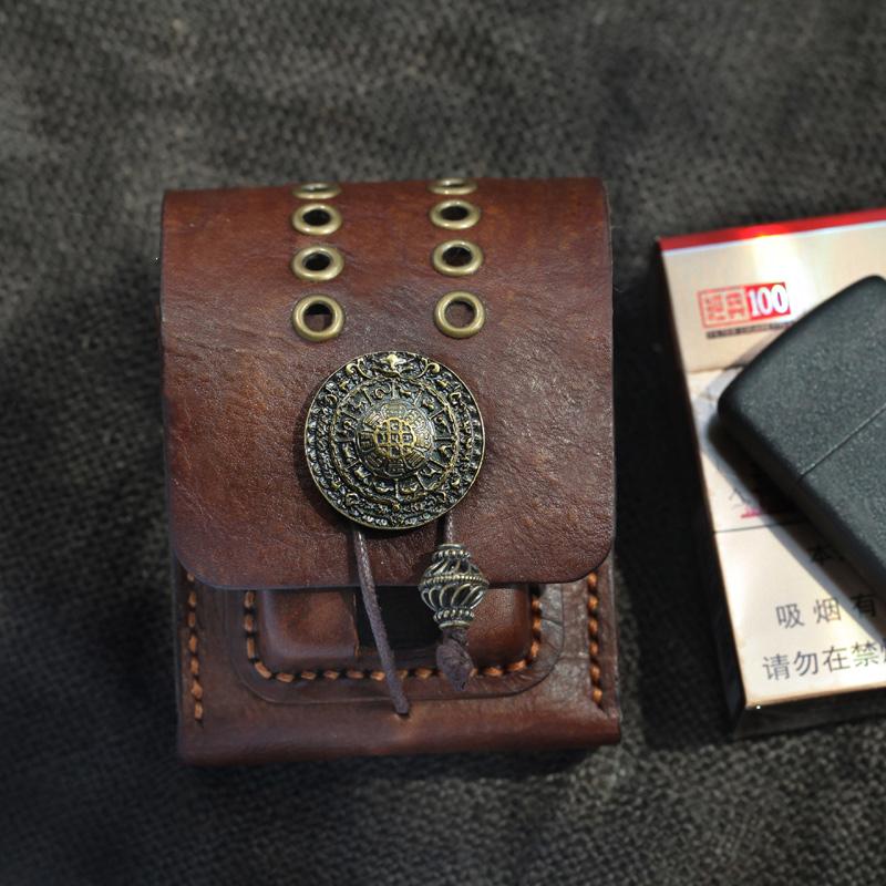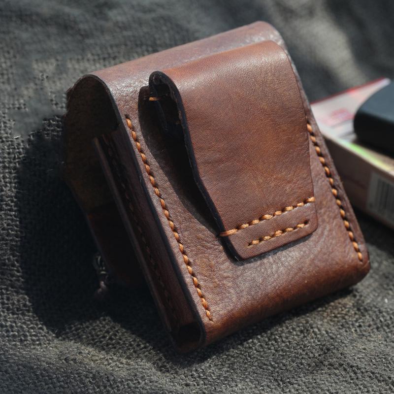 Style: Cool Handmade Brown Leather Mens Calibu Zippo Cigarette Case with Lighter Holder for Men