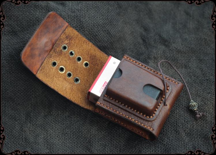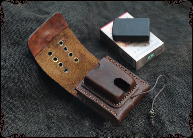 Design: Cool Handmade Brown Leather Mens Calibu Zippo Cigarette Case with Lighter Holder for Men